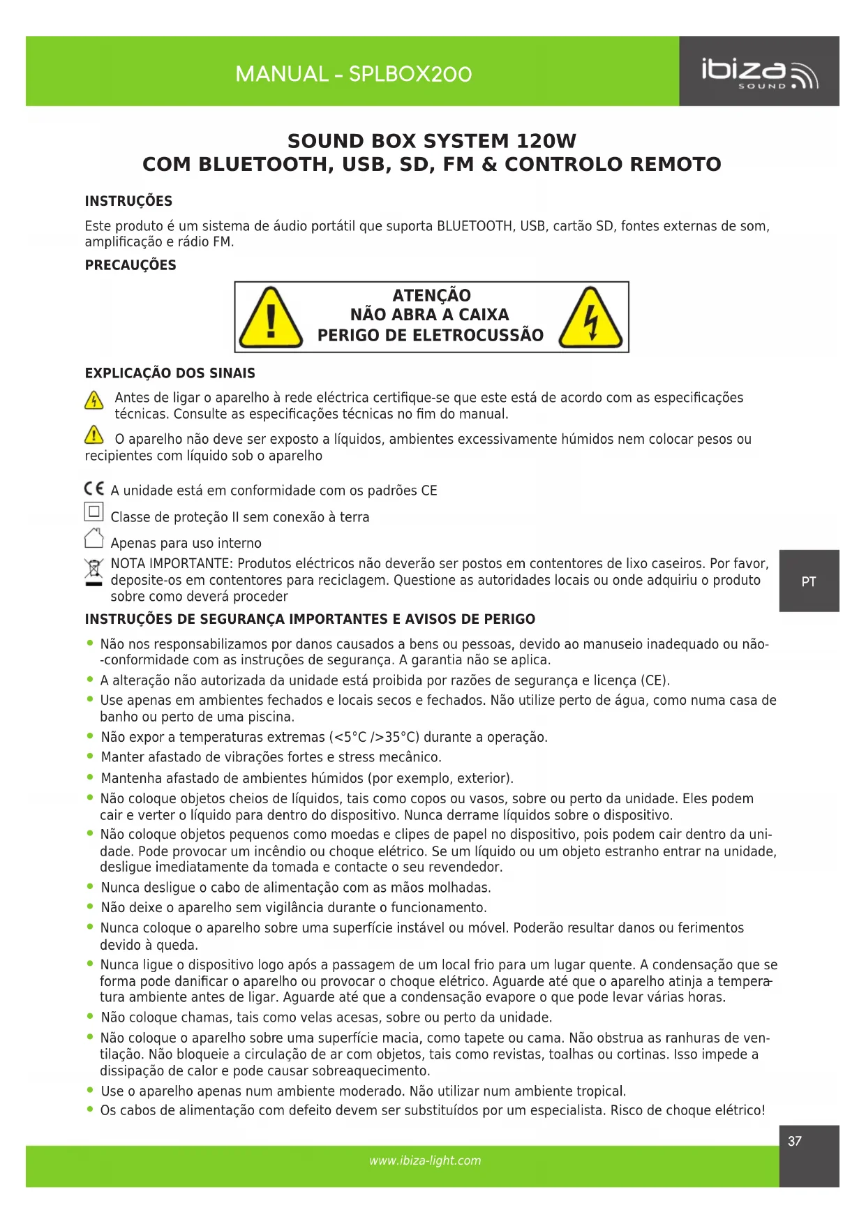 MANUAL DE UTILIZADOR SPLBOX200 IBIZA SOUND