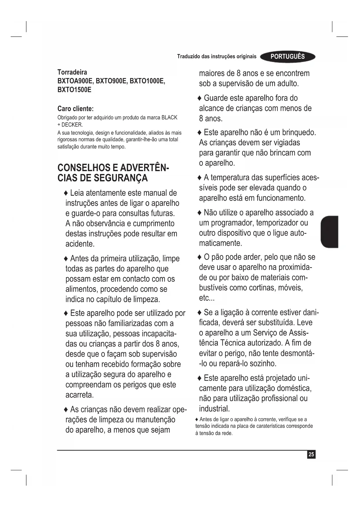 MANUAL DE UTILIZADOR BXTOA900E BLACK & DECKER