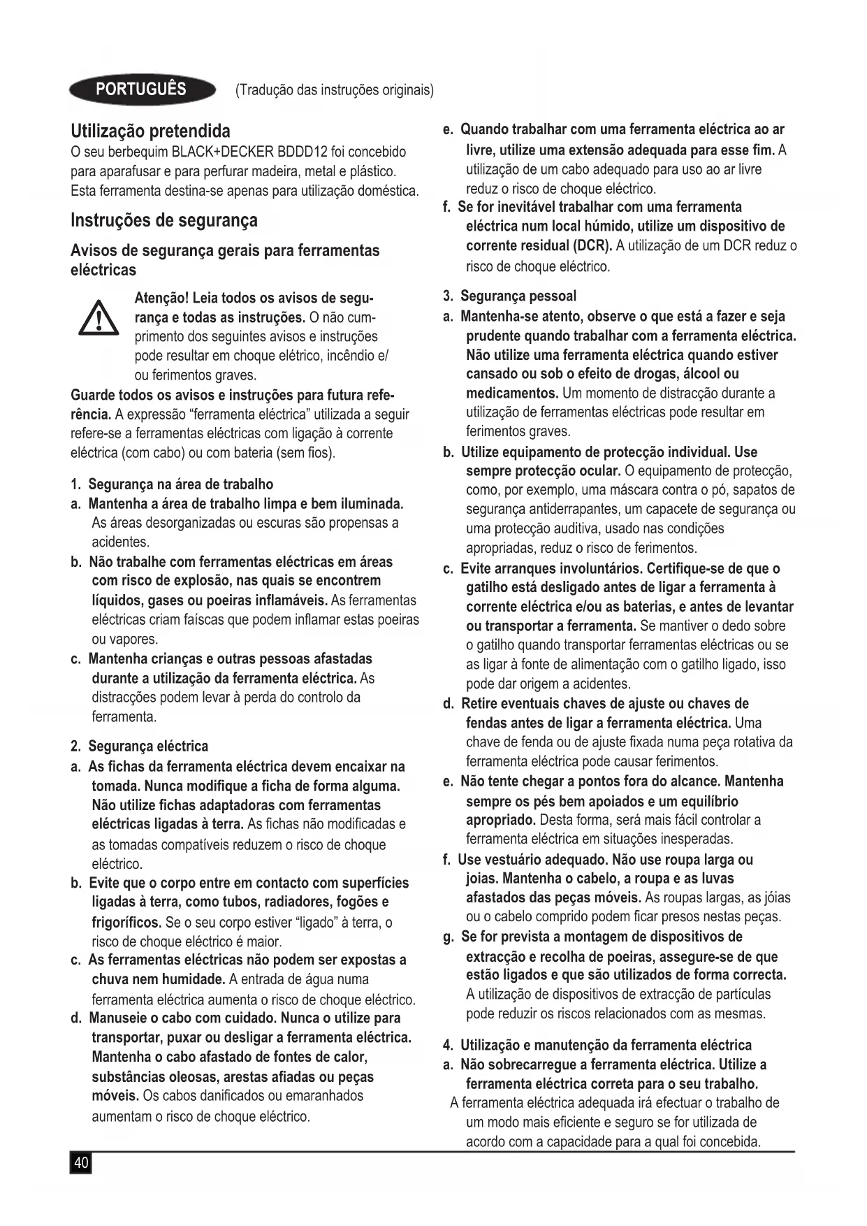 MANUAL DE UTILIZADOR BDDD12 BLACK & DECKER