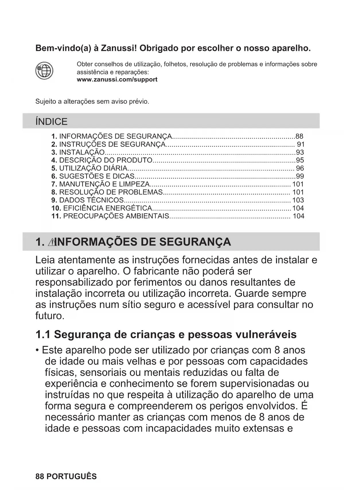 - Este aparelho pode ser utilizado por crianças com 8 anos de idade ou mais velhas e por pessoas com capacidades físicas, sensoriais ou mentais reduzidas ou falta de experiência e conhecimento se forem supervisionadas ou instruídas no que respeita à utilização do aparelho de uma forma segura e compreenderem os perigos envolvidos. É necessário manter as crianças com menos de 8 anos de idade e pessoas com incapacidades muito extensas e 88 PORTUGUÊScomplexas afastadas do aparelho, a menos que sejam constantemente vigiadas.