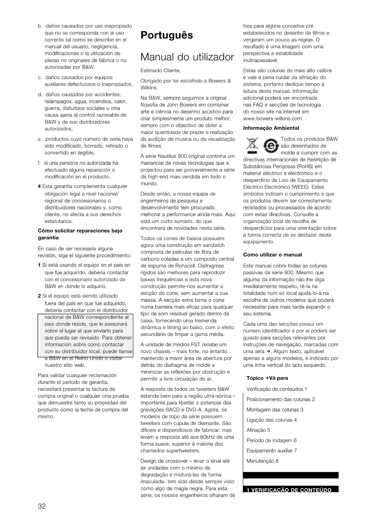 MANUAL DE UTILIZADOR 805S BOWERS & WILKINS