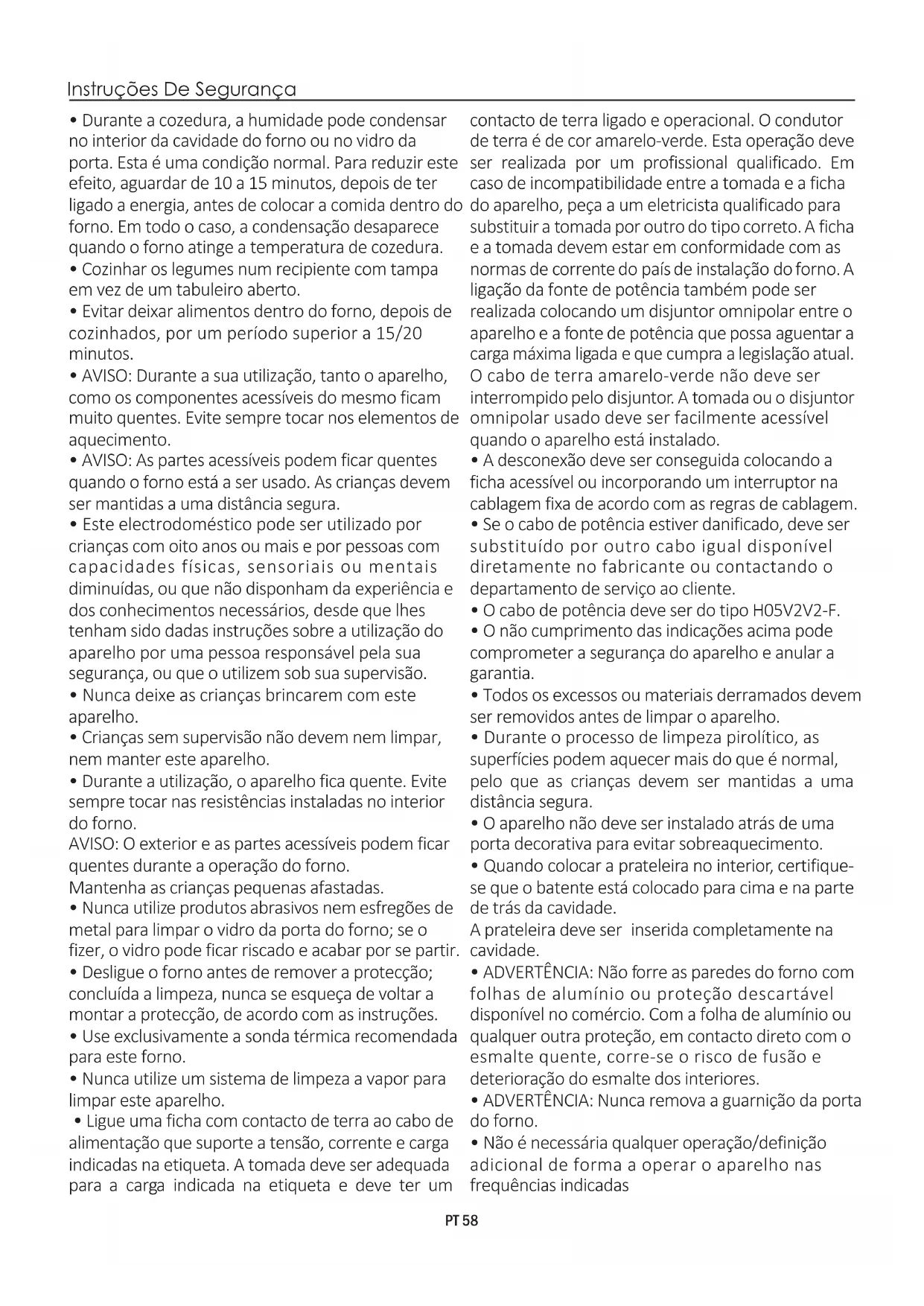 Obrigado por ter optado por um dos nossos produtos. Para tirar o maior proveito possível do seu forno, recomendamos que: Devido à sua natureza, um forno aquece muito, em especial a sua porta de vidro. Quando o forno for ligado pela primeira vez, ele poderá emitir fumo com um cheiro acre. Isto fica a dever-se ao facto de o agente aglutinante dos painéis de isolamento existentes à volta do forno ter sido aquecido pela primeira vez. Trata-se de um facto absolutamente normal; se ele ocorrer, terá apenas de esperar que o fumo se dissipe antes de introduzir os alimentos no forno. Leia atentamente este manual de instruções de utilização; ele contém instruções importantes sobre a instalação, a utilização e a manutenção seguras deste forno. Mantenha este manual de instruções à mão, num local seguro, para o poder consultar sempre que necessário.