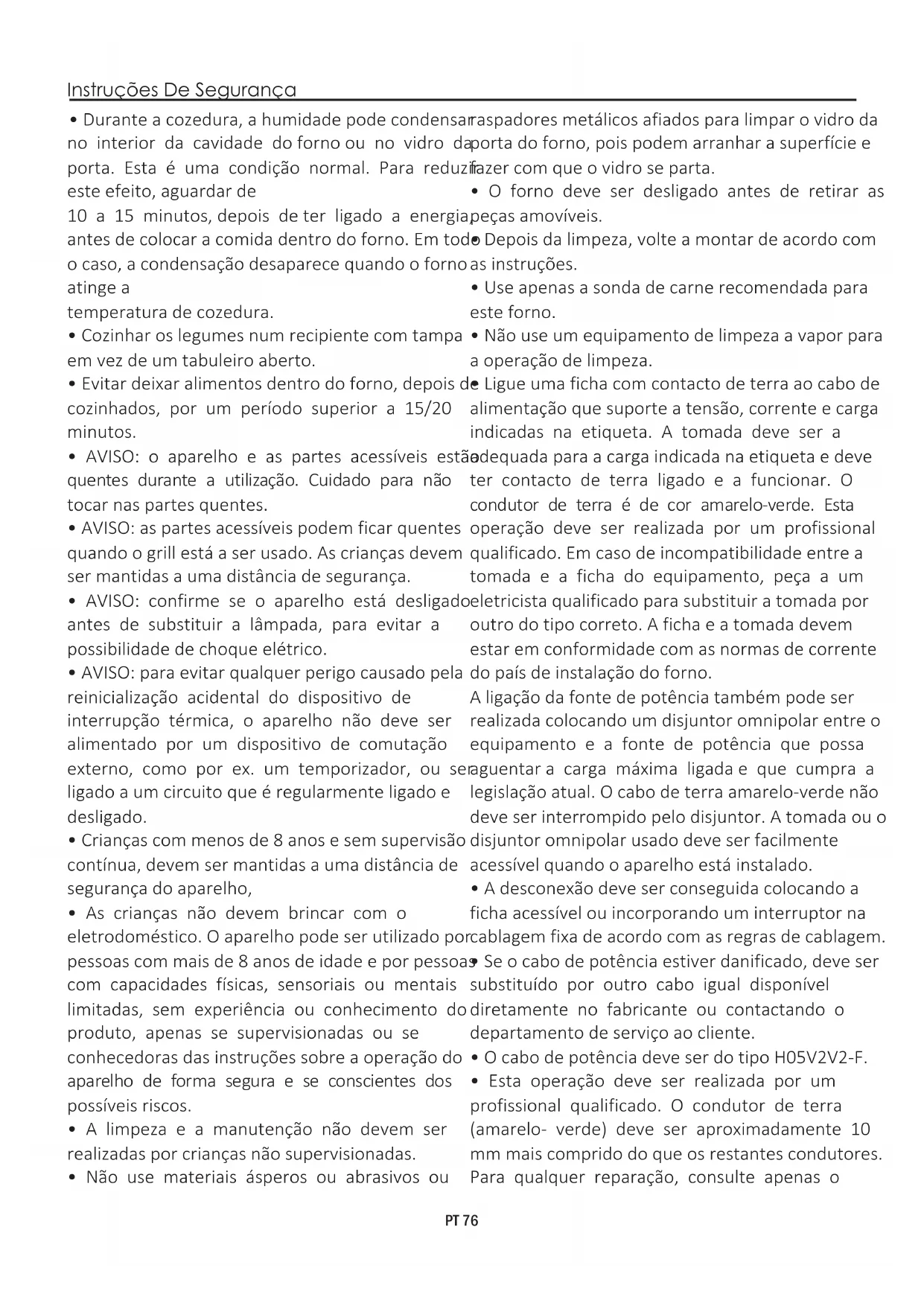 - Esta operação deve ser realizada por um profissional qualificado. O condutor de terra (amarelo- verde) deve ser aproximadamente 10 mm mais comprido do que os restantes condutores. Para qualquer reparação, consulte apenas o PT 76Departamento de Serviço ao Cliente e solicite o uso de peças originais.