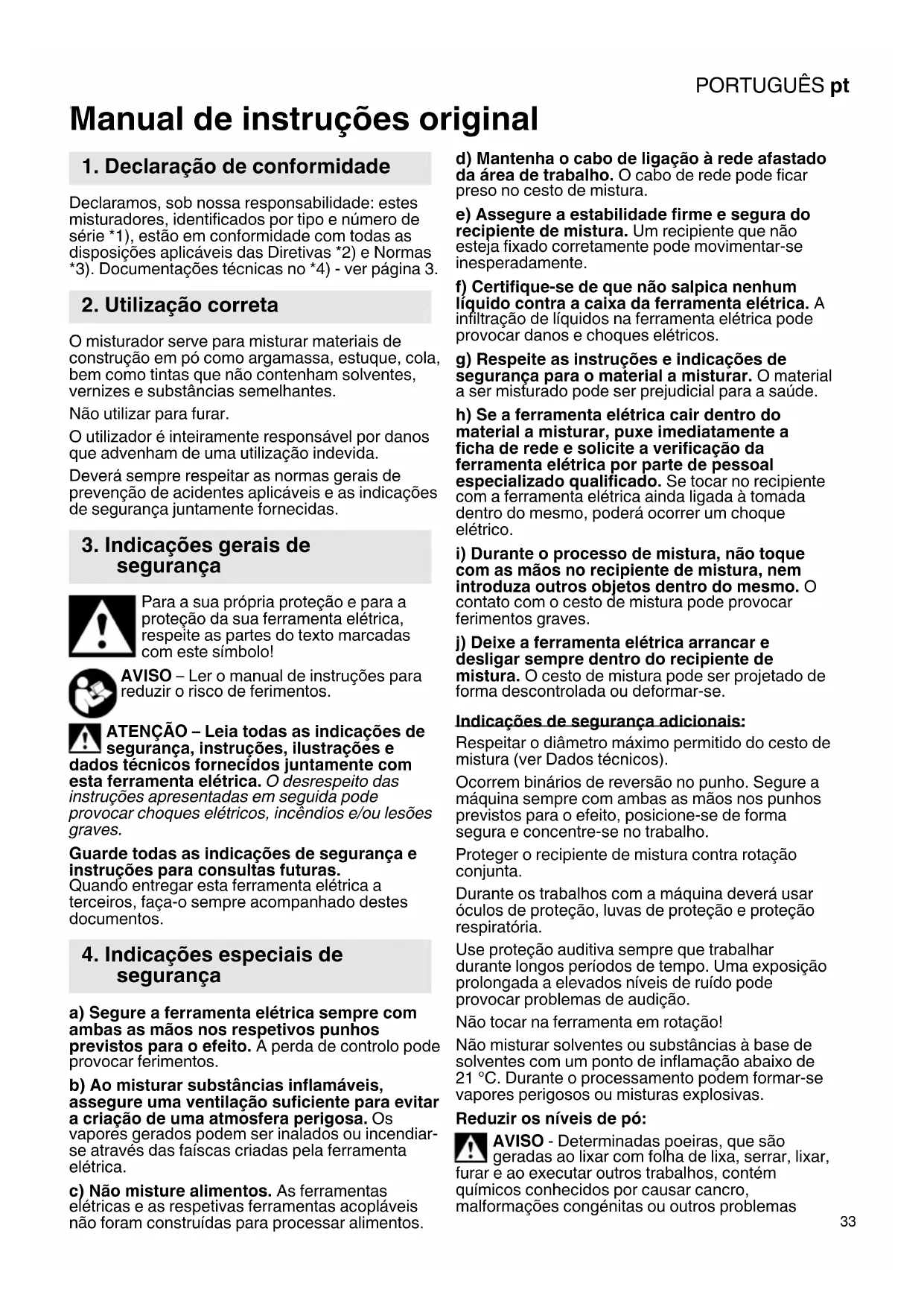 g) Respeite as instruções e指示os de segurar para o material a misturar. O material a ser misturado pode ser prejudicial para a saúde.