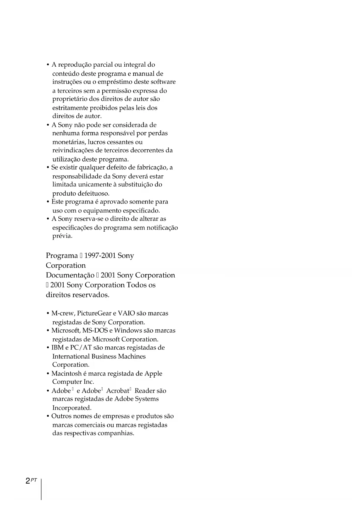 - A Sony não pode ser considerada de nenhuma forma responsável por perdas monetárias, lucros cessantes ou reivindicações de terceiros decorrentes da utilização deste programa.