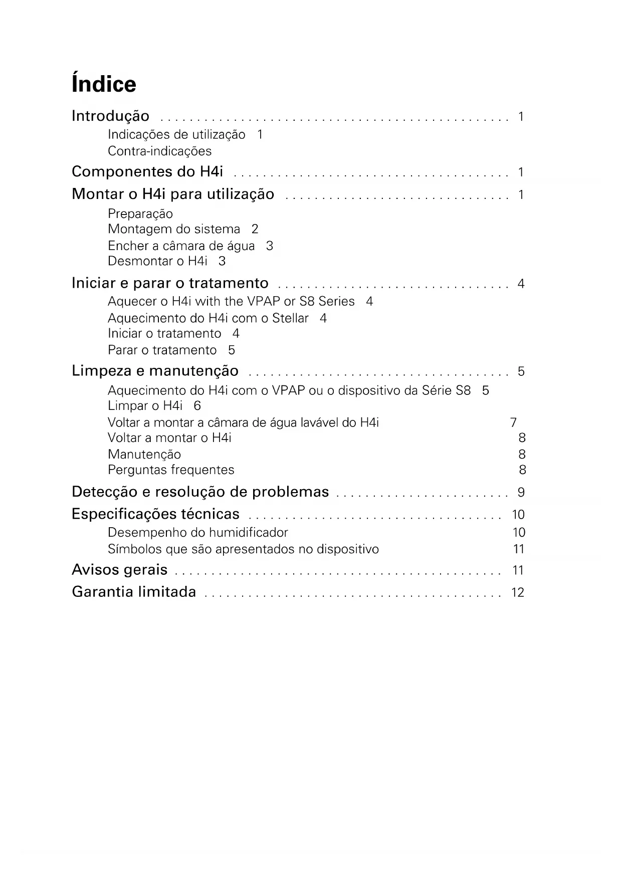 - O H4i está contra-indicado para utilização invasiva. É recomendável utilizar um humidificador externo aprovado para utilização invasiva de acordo com a EN ISO 8185.