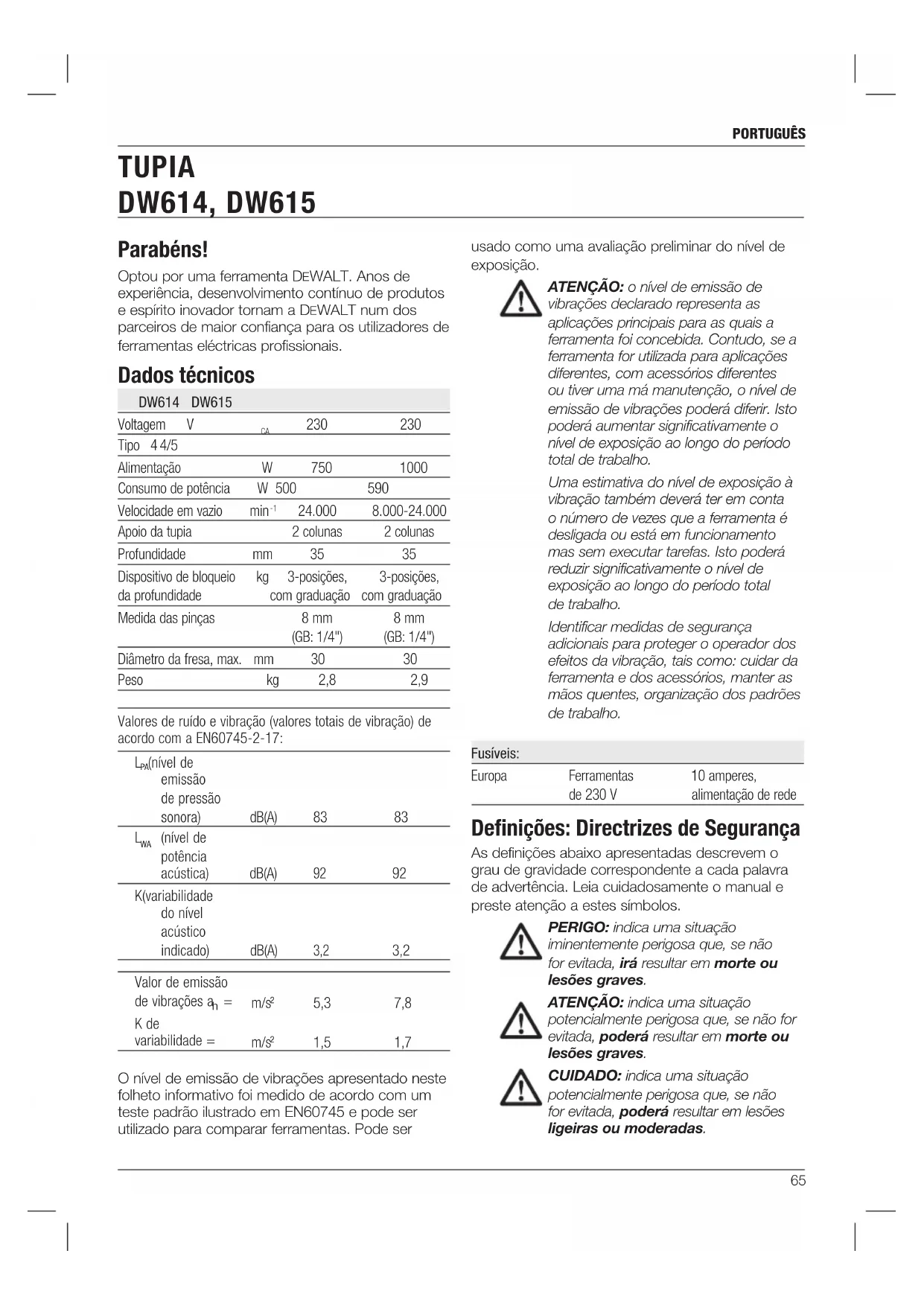 MANUAL DE UTILIZADOR DW614 DEWALT