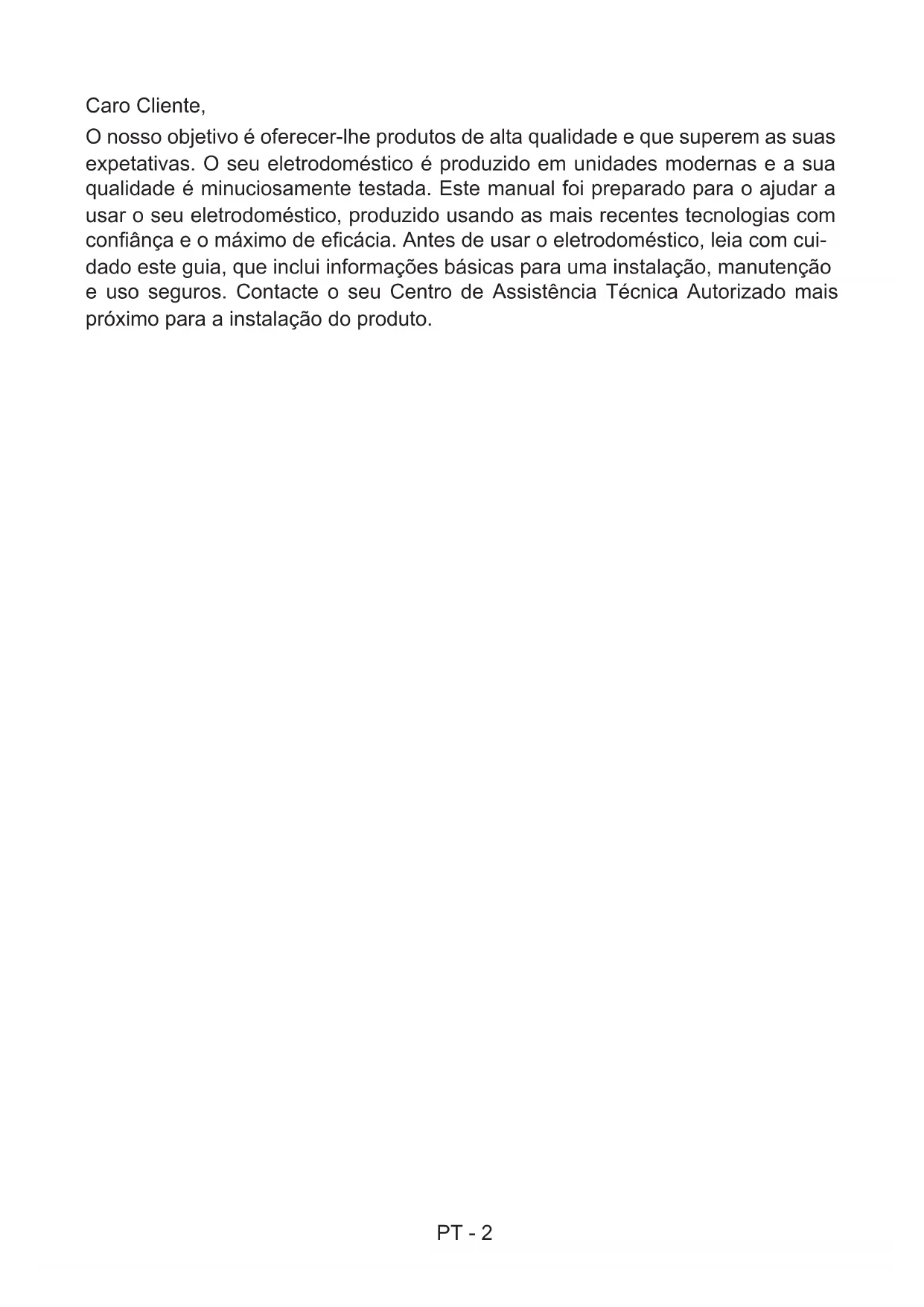 Produzido com peças e materiais da melhor qualidade, este moderno, fun- cional e prático forno irá de encontro às suas necessidades em todos os as- petos. Certique-se de que lê o manual para obter resultados de sucesso e não experimentar nenhuns problemas no futuro. As informações apresentadas em baixo contêm regras necessárias para o correto posicionamento e opera- ções de manutenção. Devem ser lidas sem falta, especialmente pelo técnico que instalar o eletrodoméstico.