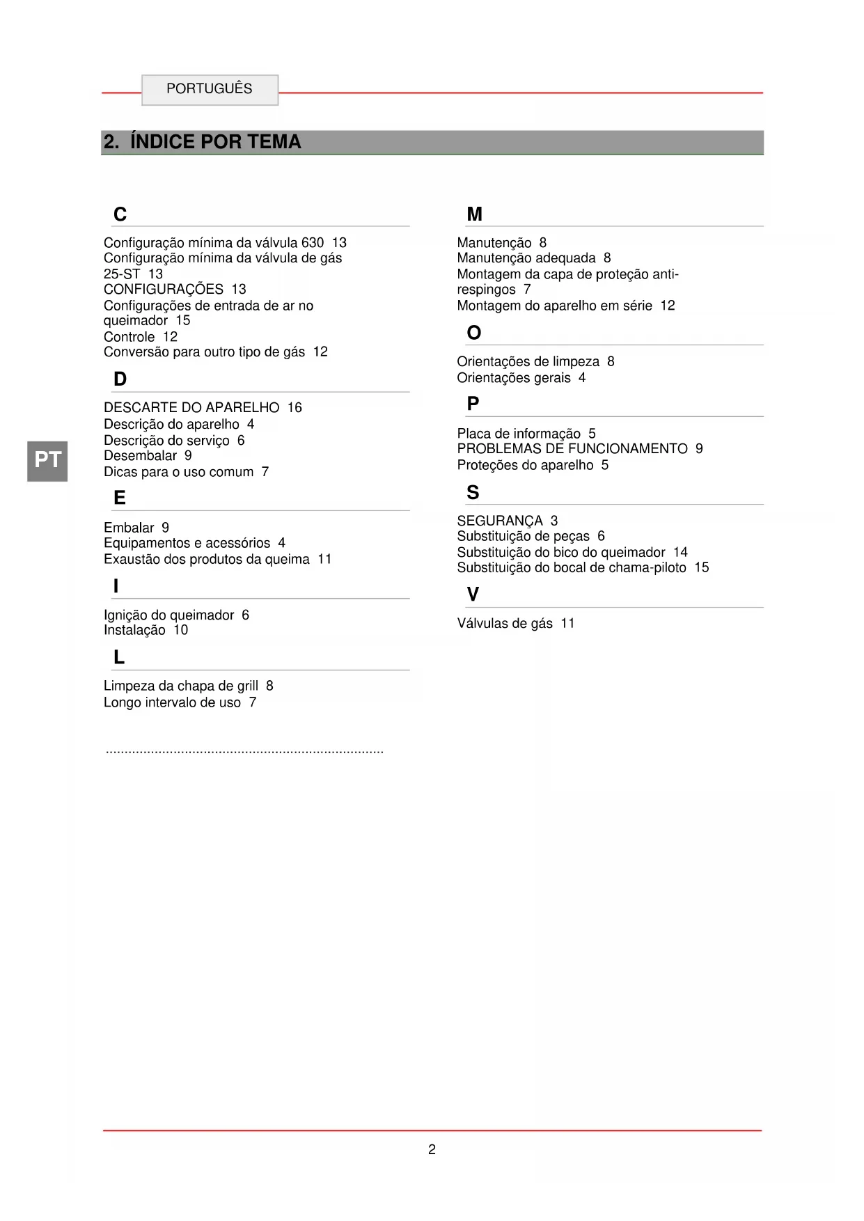 SEGURANÇA 3 Substituição de peças 6 Substituição do bico do queimador 14 Substituição do bocal de chama-piloto 15