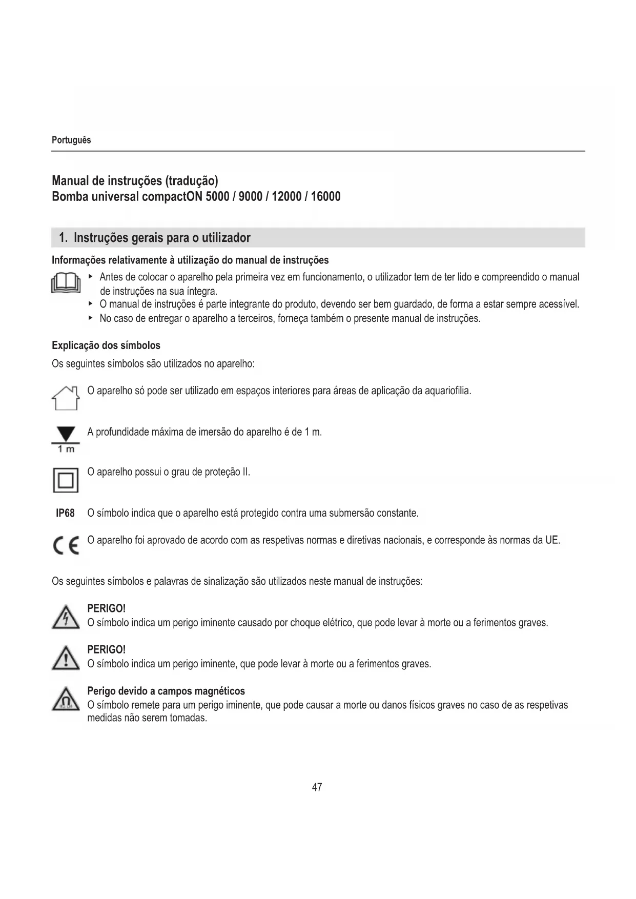 Ver página 3.47 Português Manual de instruções (tradução) Bomba universal compactON 5000 / 9000 / 12000 / 16000