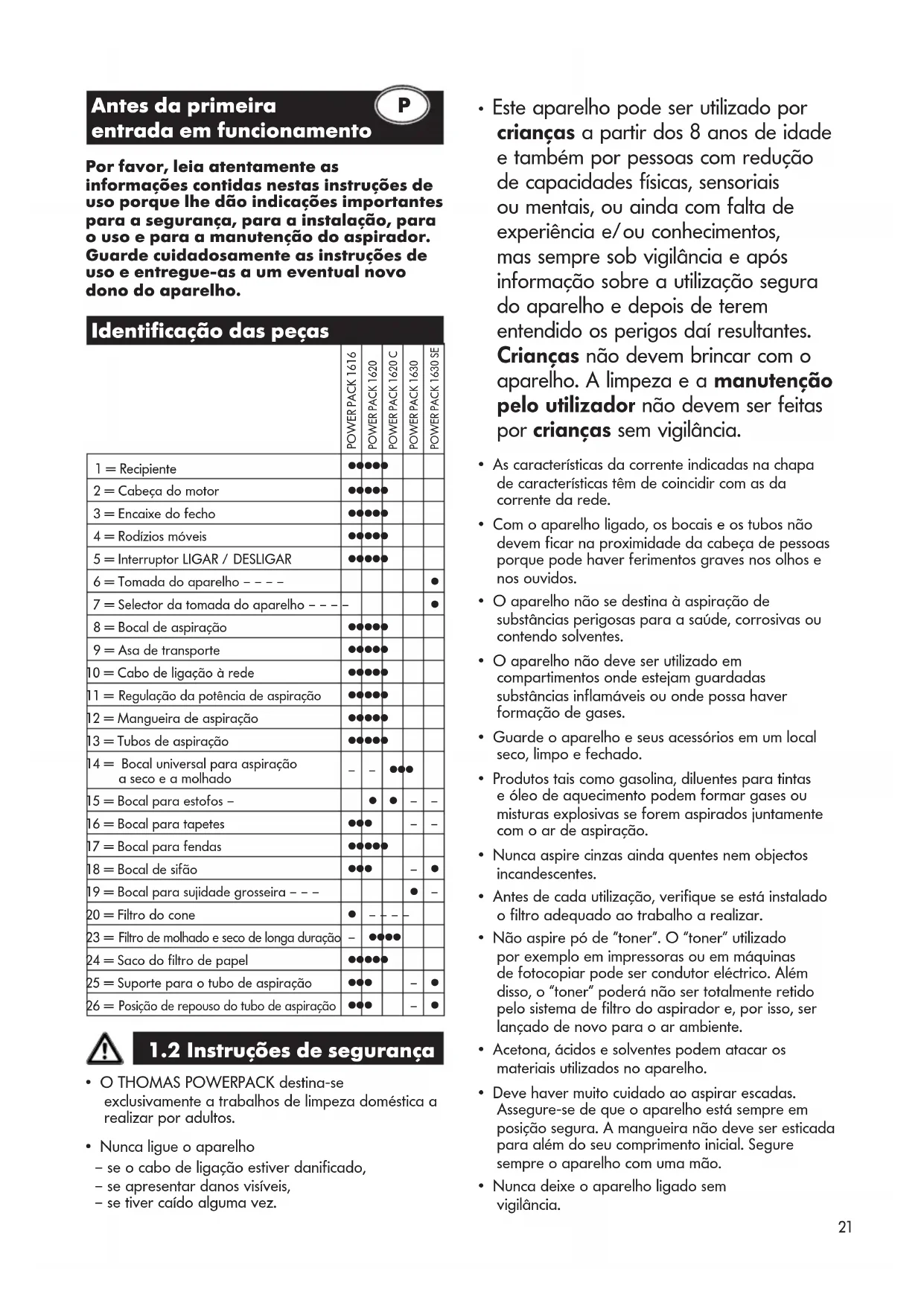 - O THOMAS POWERPACK destino-se exclusivamente aeworkos de limpeza domestica a realizar poradultos.