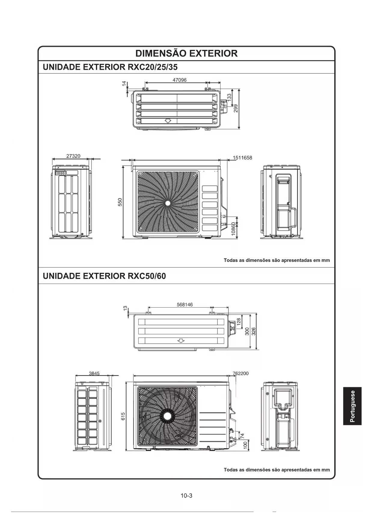 Todas as dimensões são apresentadas em mm10-5 Portuguese