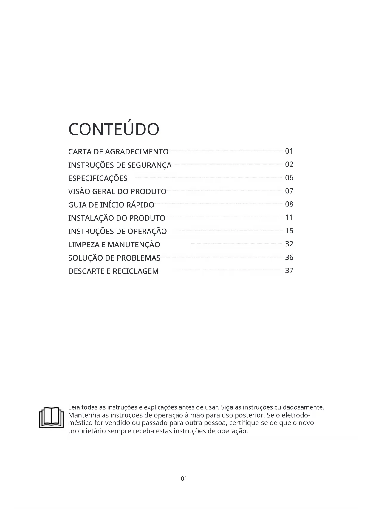 Por favor, leia cuidadosamente as seguintes informações de segurança e siga-as estrita- mente para minimizar o risco de incêndio ou explosão, choque elétrico e para prevenir danos à propriedade, lesões pessoais ou perda de vida. Não seguir estas instruções anu- lará qualquer garantia.03 Perigo de Choque Elétrico