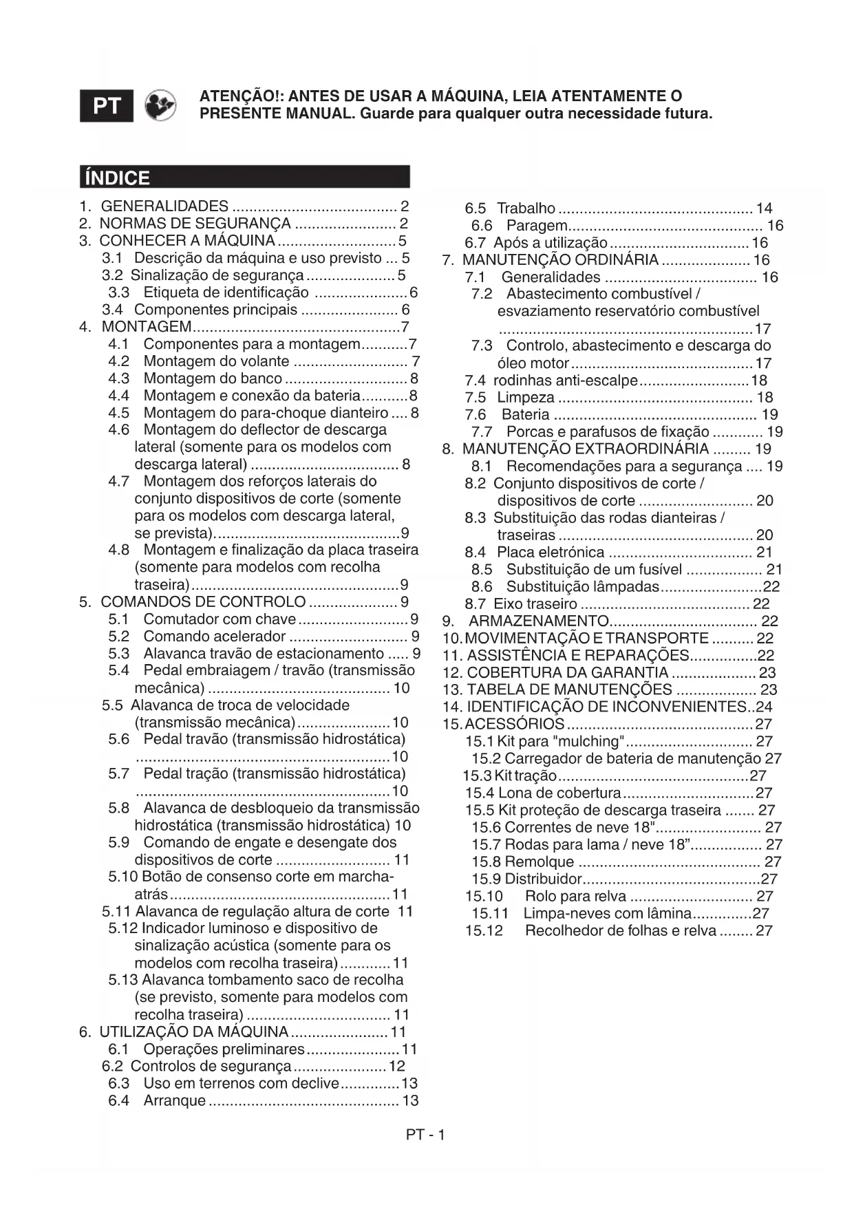 15.12 Recolhedor de folhas e relva ........ 27PT - 2