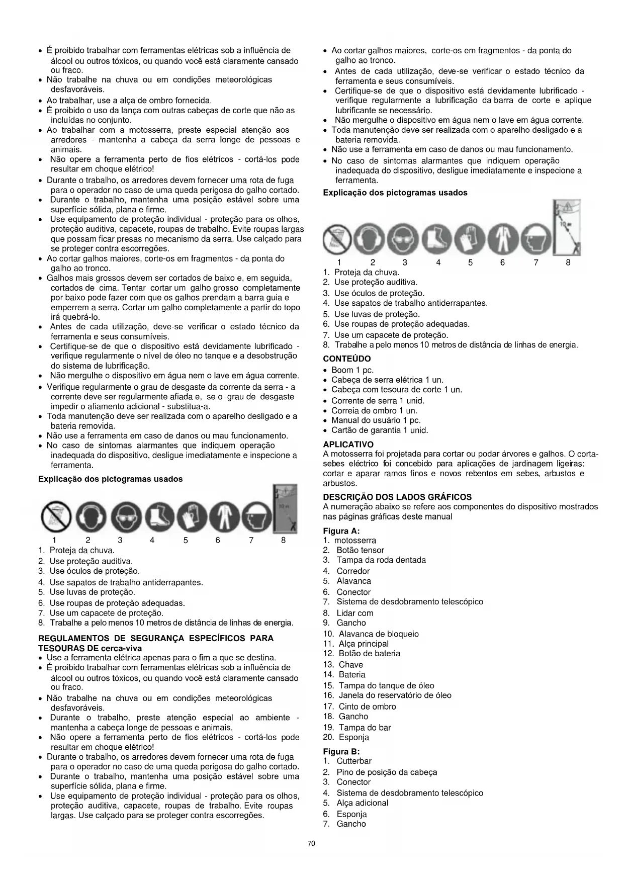 Nota: As instruções a seguir são válidas para serras de vara e tesouras elétricas.