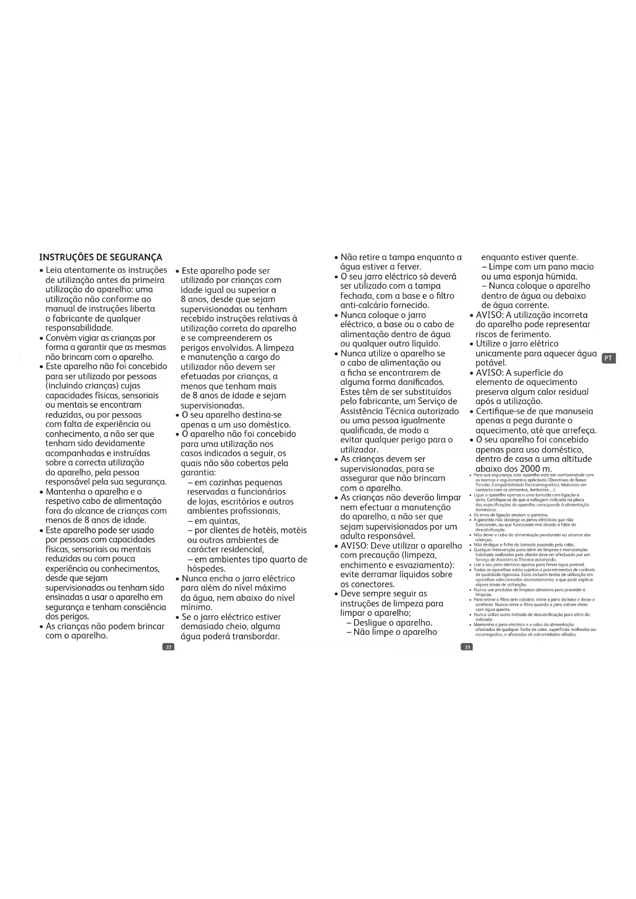 - O seu jarro eléctrico só deverá ser utilizado com a tampa fechada, com a base e o filtro anti-calcário fornecido.