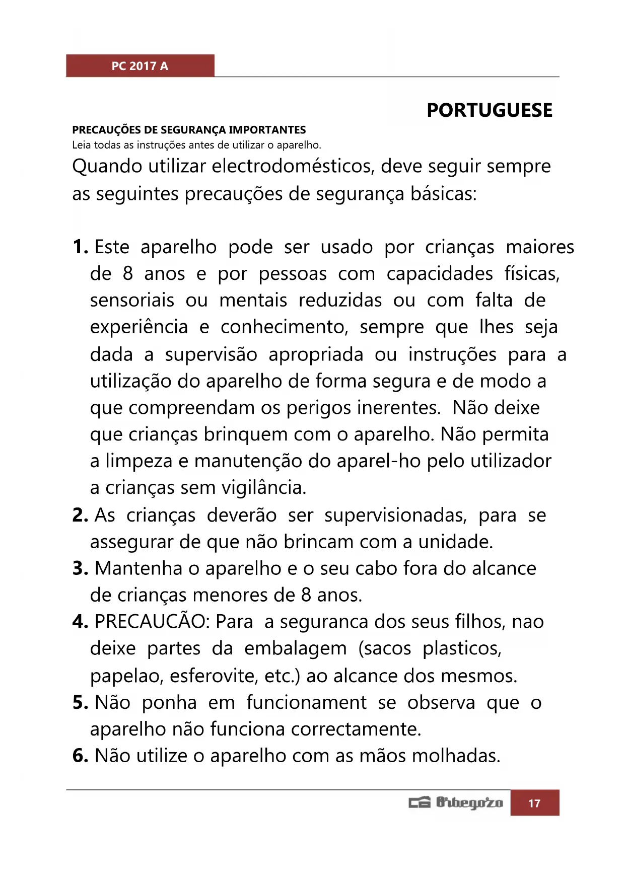 Encontre gratuitamente o manual do aparelho PC 2017 A Orbegozo em formato PDF.