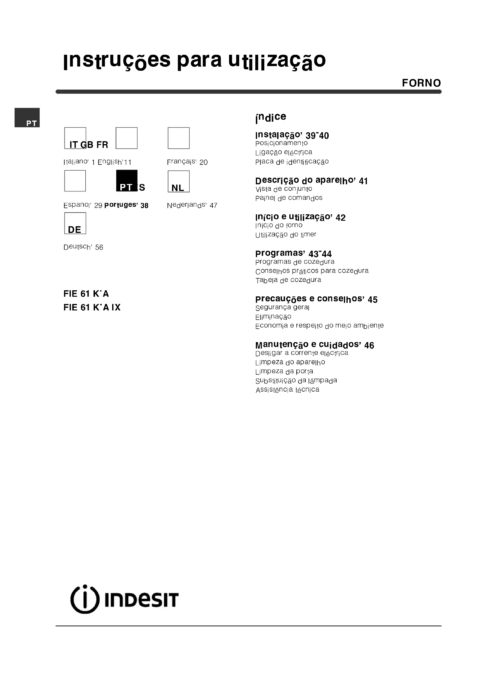FIE 61 K.A (AN) - Forno INDESIT - Manual de utilização gratuito