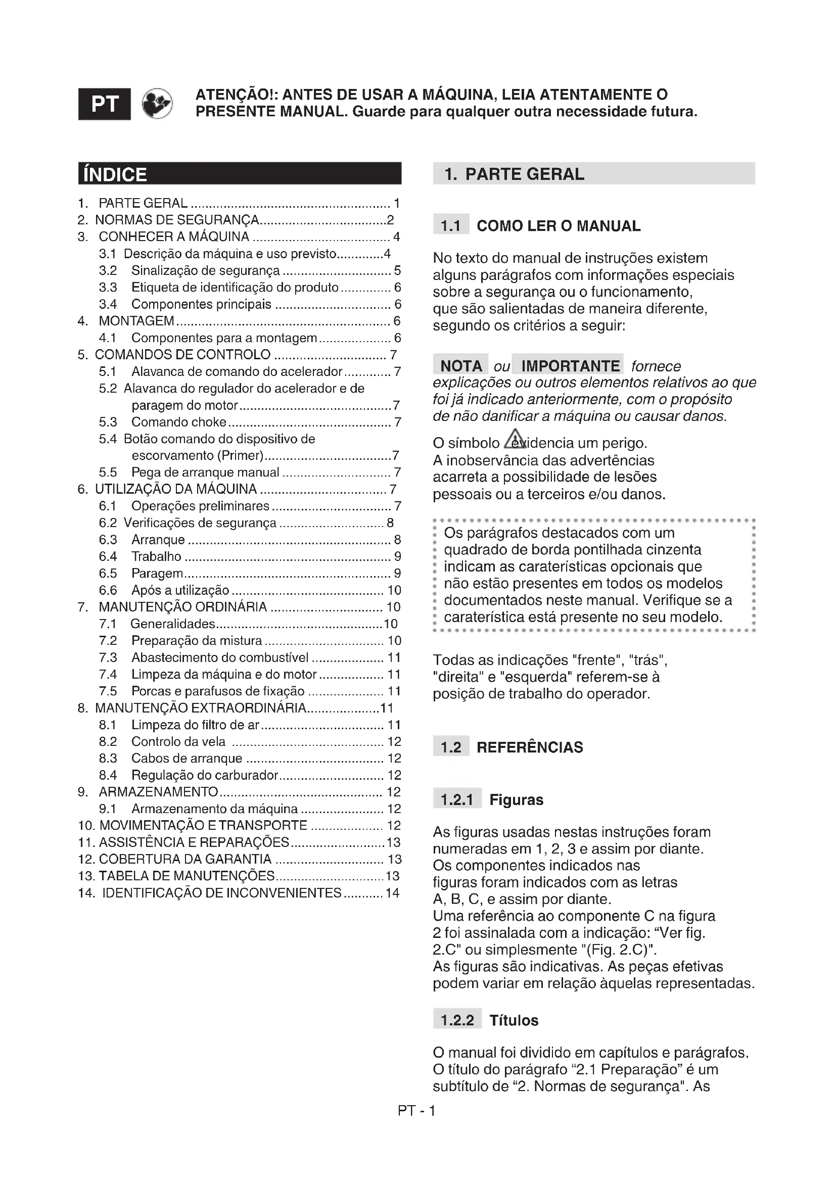 ATENCAO! Antes de usar a moto-roçadeira, ler com atenção este manual de instruções.