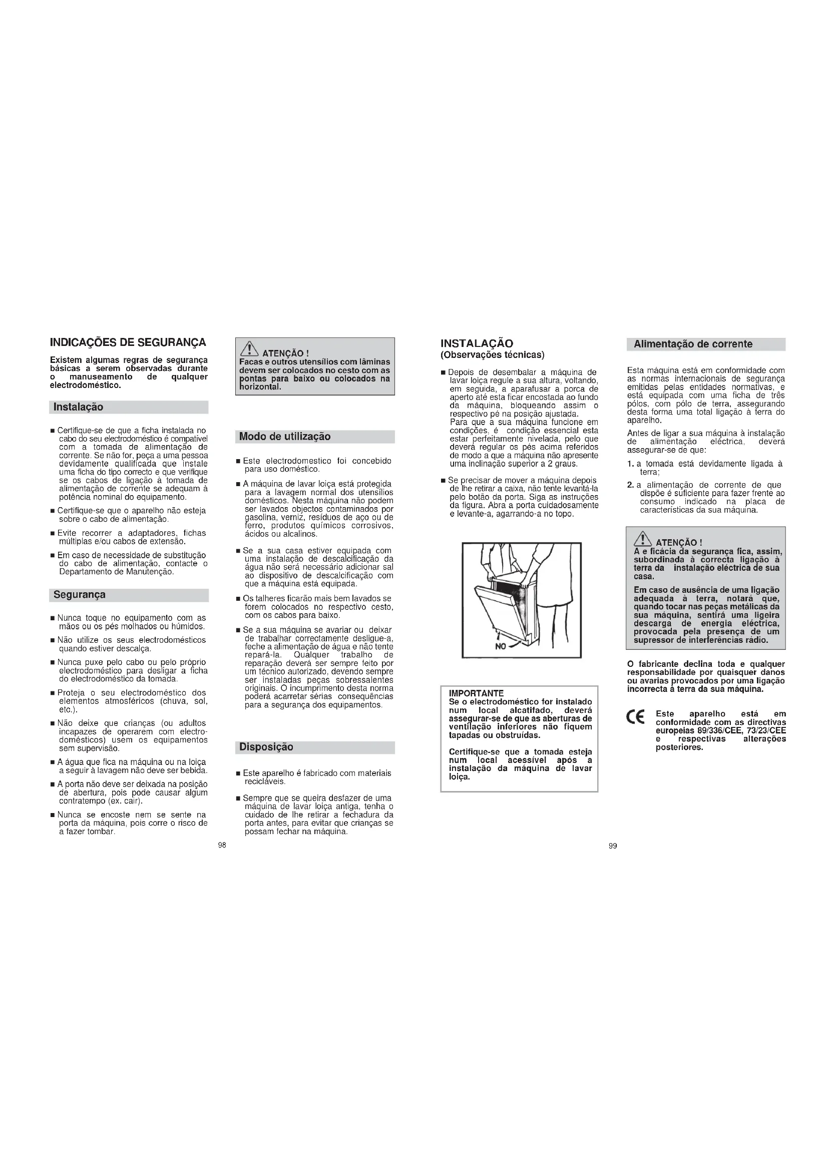 Existem algumas regras de seguranciabasicas a serem observadas duranteo manuseamento de qualquer electrodomestico.