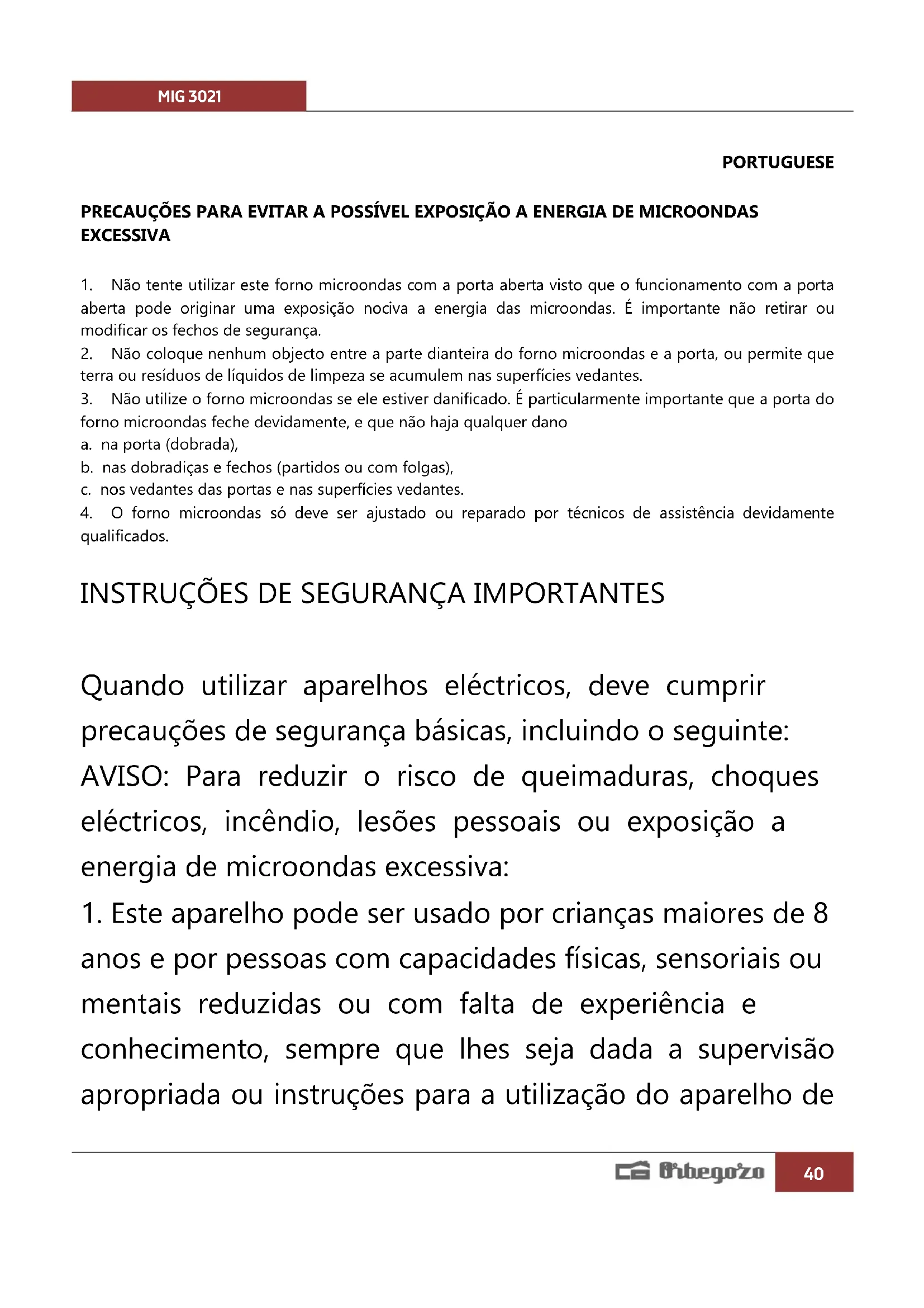 MIG 3021 - Micro-ondas Orbegozo - Manual de utilização gratuito