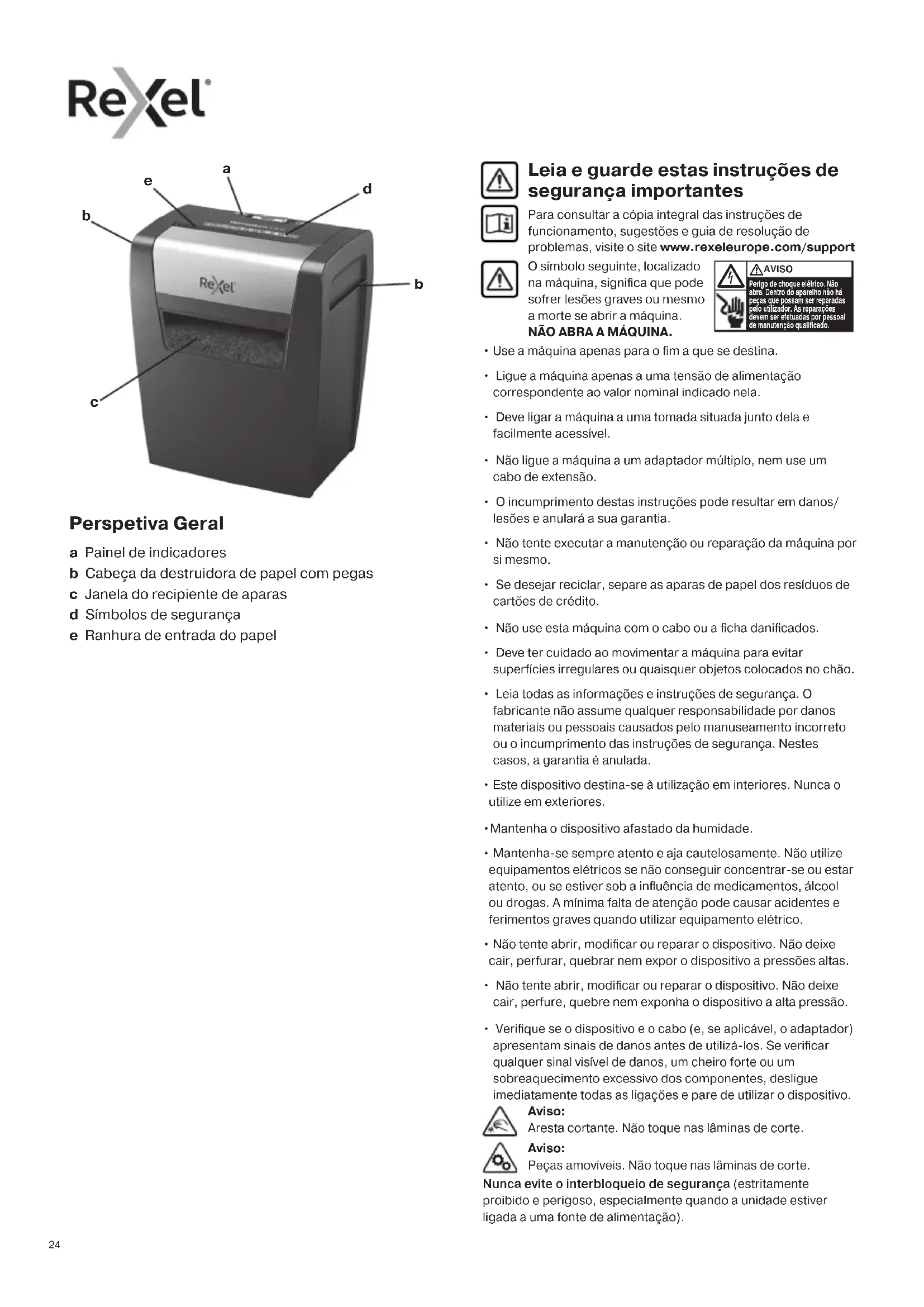 Nunca evite o interbloqueio de segurança (estritamente proibido e perigoso, especialmente quando a unidade estiver ligada a uma fonte de alimentação). Aviso: Aresta cortante. Não toque nas lâminas de corte. Aviso: Peças amovíveis. Não toque nas lâminas de corte.