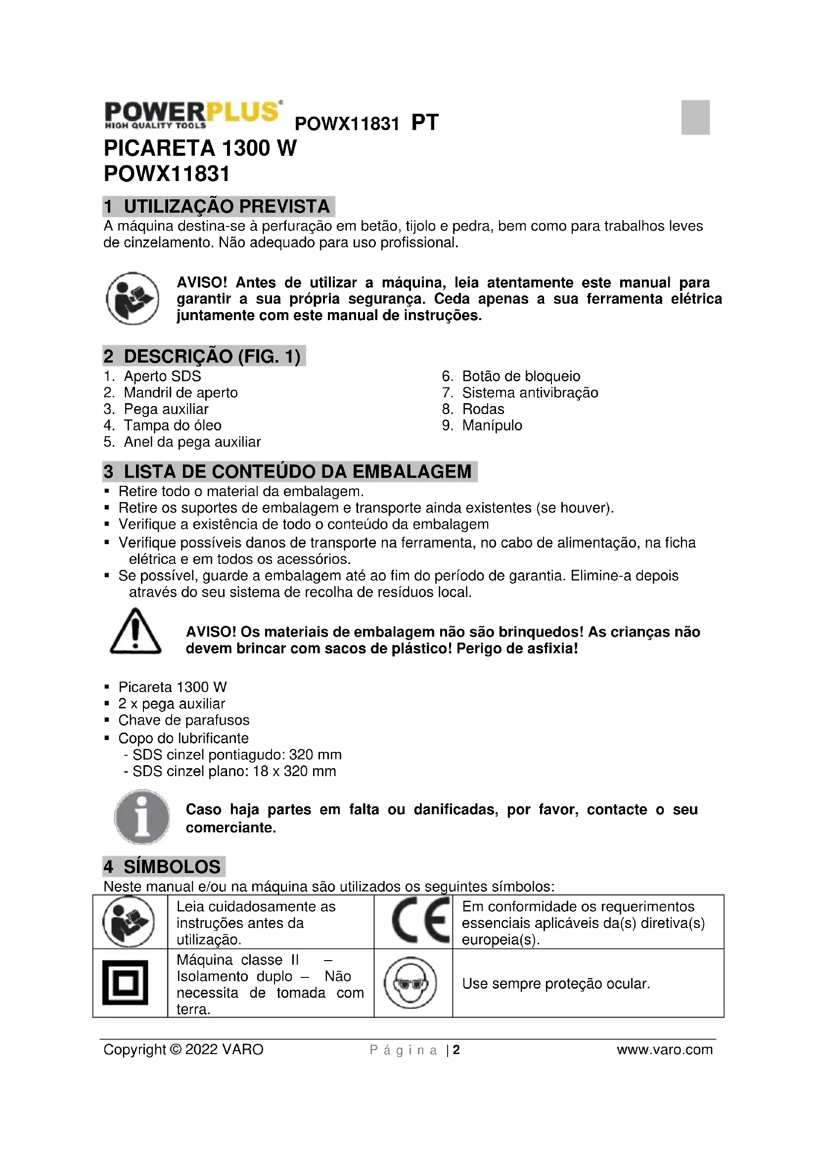 Use sempre proteção ocular.POWX11831 PT Copyright © 2022 VARO P á g i n a | 3 www.varo.com