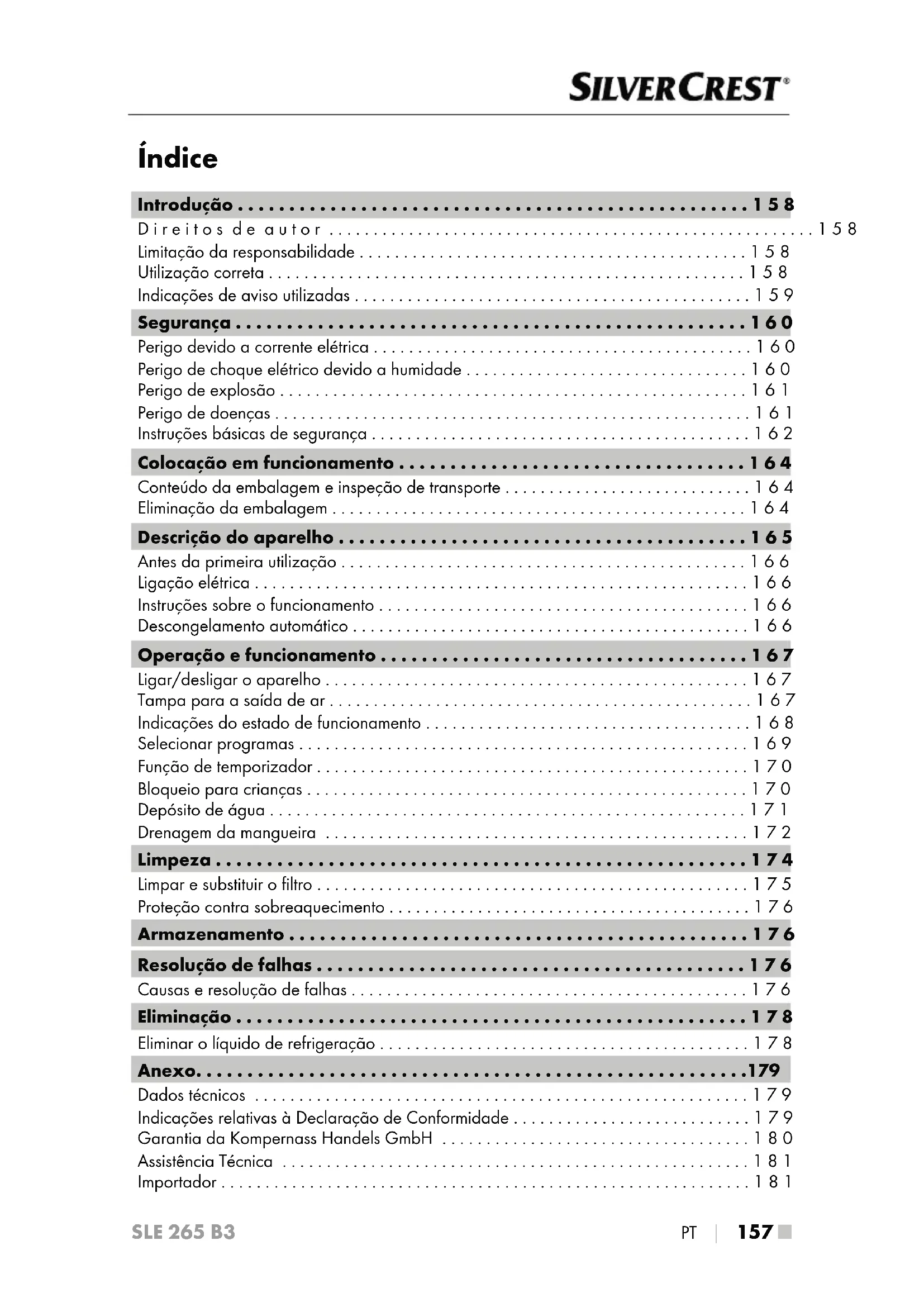 - SLE 265 B3 Índice Introdução p. 158