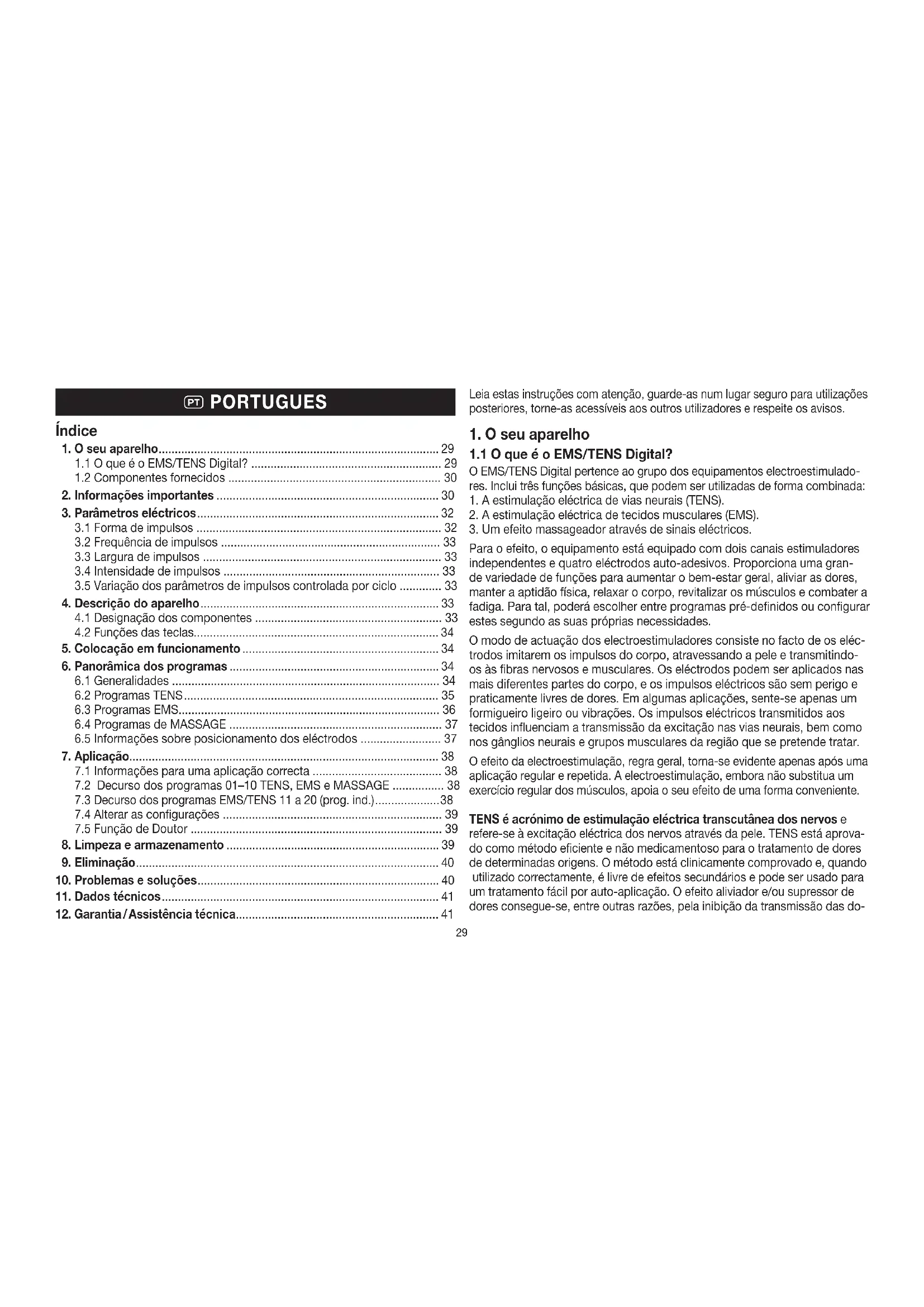 Instruções de utilização Estimulador digital EMS/TENS ..................................29