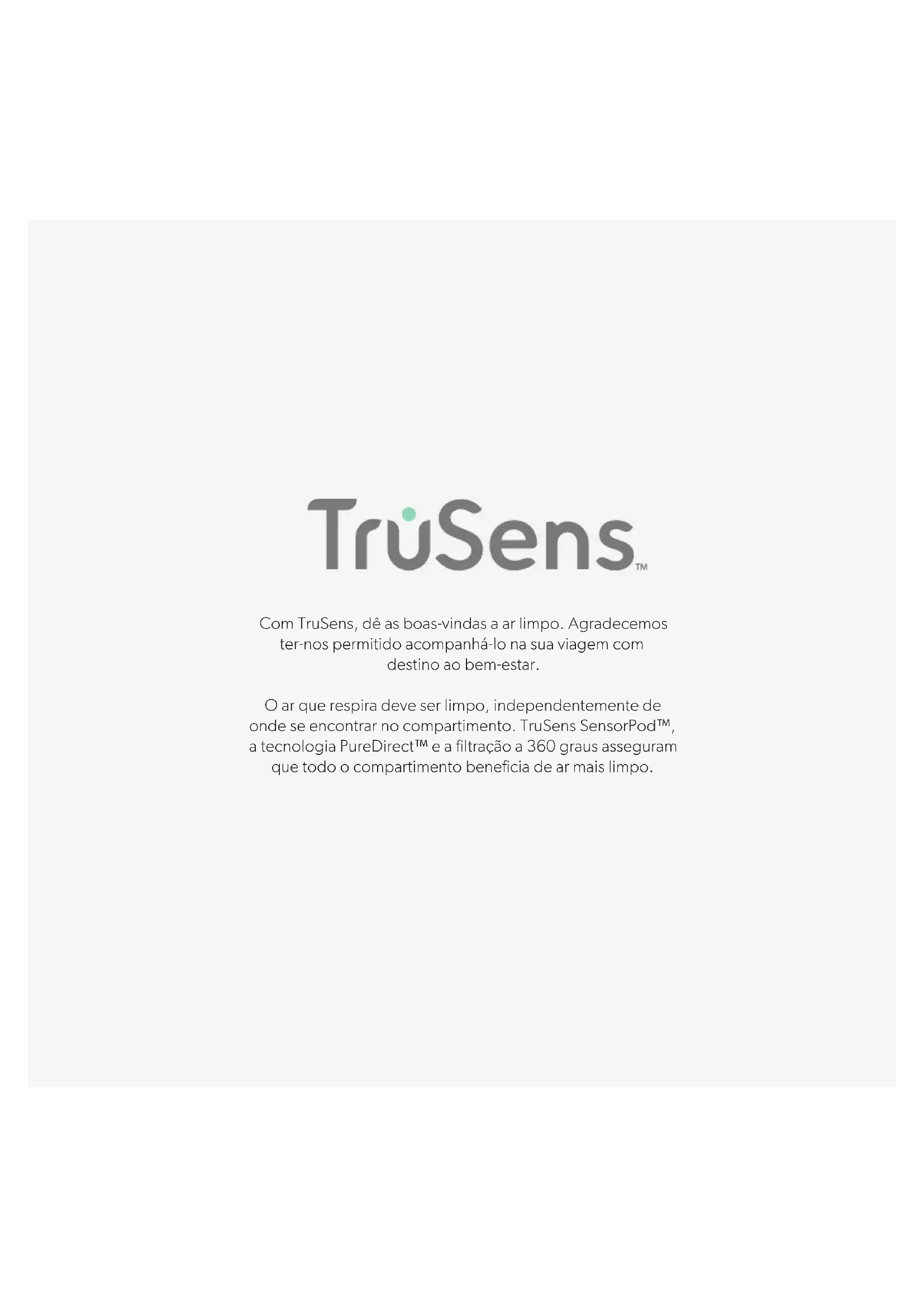 Feedback em tempo real O revolucionário SensorPod™ avalia a qualidade do ar medindo tanto as partículas pequenas (PM2.5) como as maiores (PM10). Ele calcula a qualidade geral do ar utilizando um algoritmo exclusivo que reage positivamente a aumentos genuínos de poluentes, sem reagir exageradamente à entrada de uma pessoa no compartimento ou a alguém se sentar no sofá. O indicador iluminado a cores comunica a qualidade do ar como sendo boa, moderada ou fraca, assim como um valor numérico que informa mais detalhadamente. Em modo AUTOMÁTICO o purificador ajusta automaticamente a velocidade da ventoinha em reposta a estes valores da qualidade do ar. TruSens utiliza o índice da Qualidade do Ar (1–500) criado pela Agência de Proteção Ambiental dos Estados Unidos (EPA). BOA AZUL | 0 - 50 MODERADA AMARELO | 50 - 100 FRACA VERMELHO | 100 - 500114 Admissão de Ar 360° O ar é substituído 2 vezes por hora Para um compartimento com 70 m² Tipo de Distribuição do Ar PureDirect