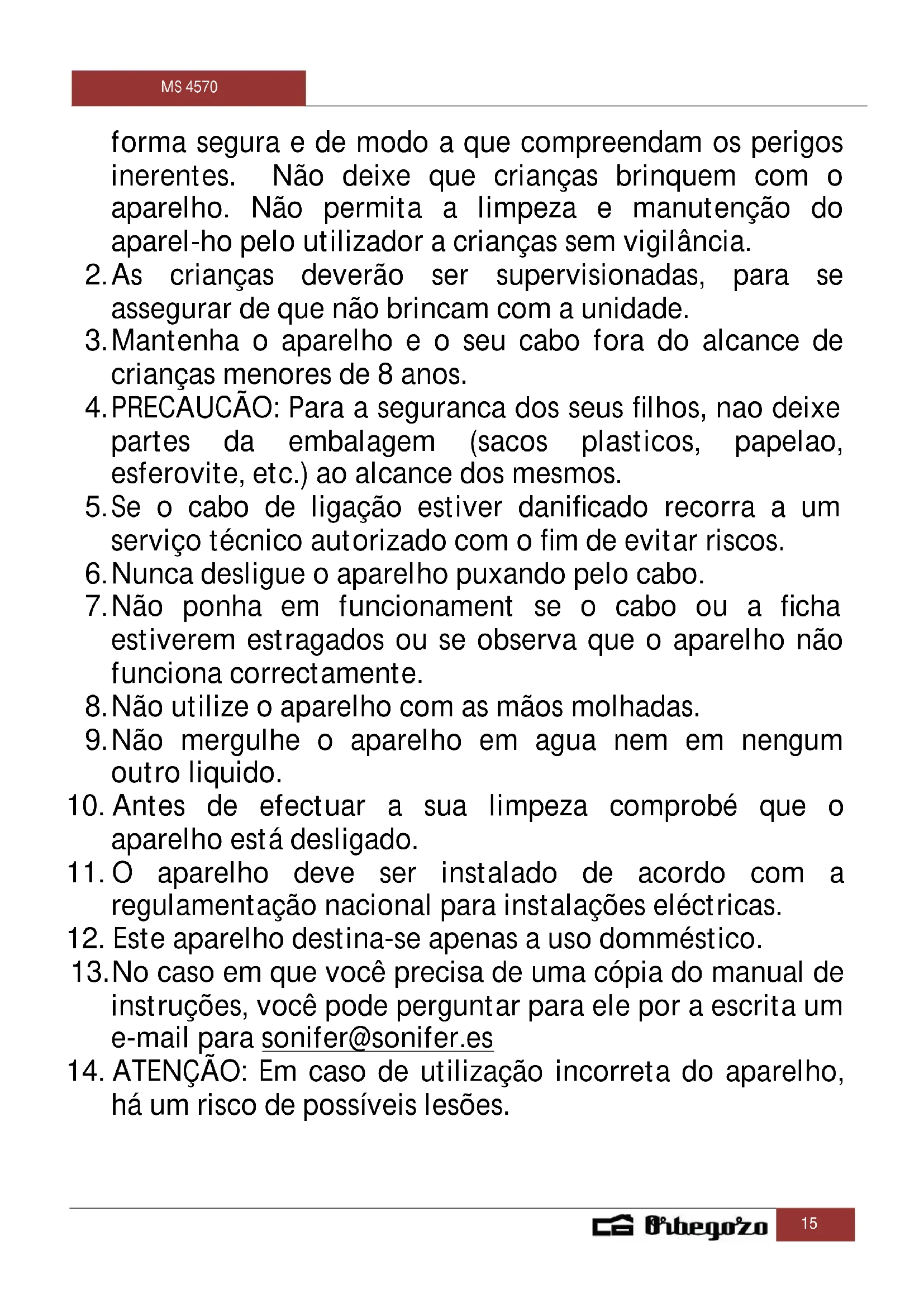 MANUAL DE UTILIZADOR MS 4570 Orbegozo