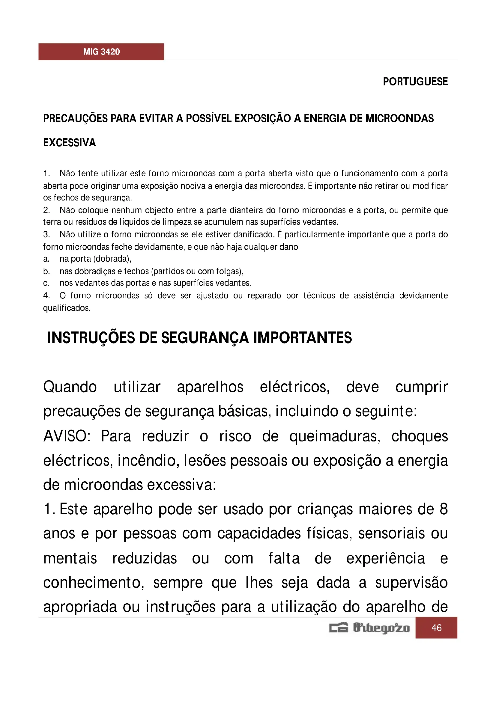 MIG 3420 - Micro-ondas Orbegozo - Manual de utilização gratuito