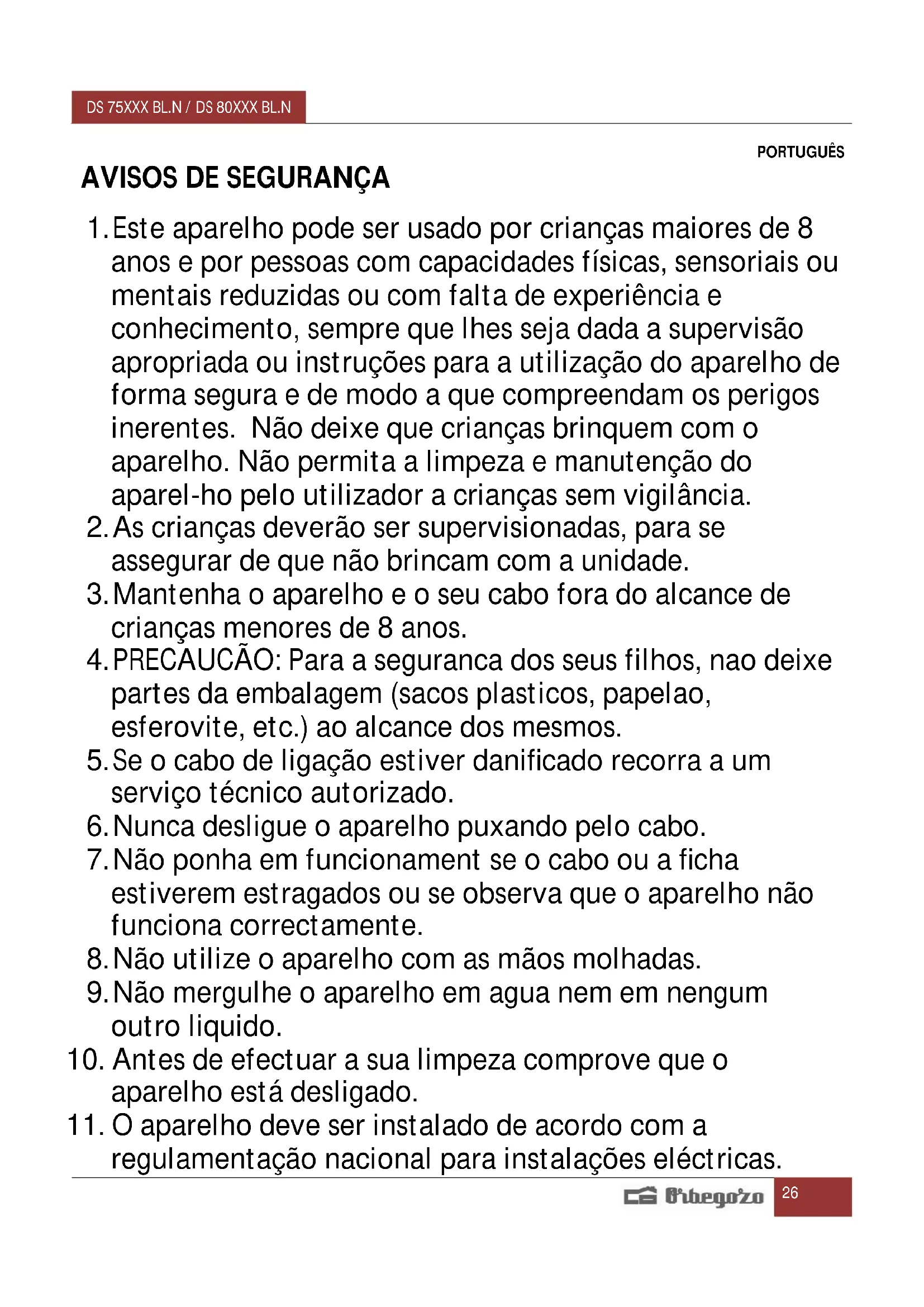 MANUAL DE UTILIZADOR DS 75170 N Orbegozo