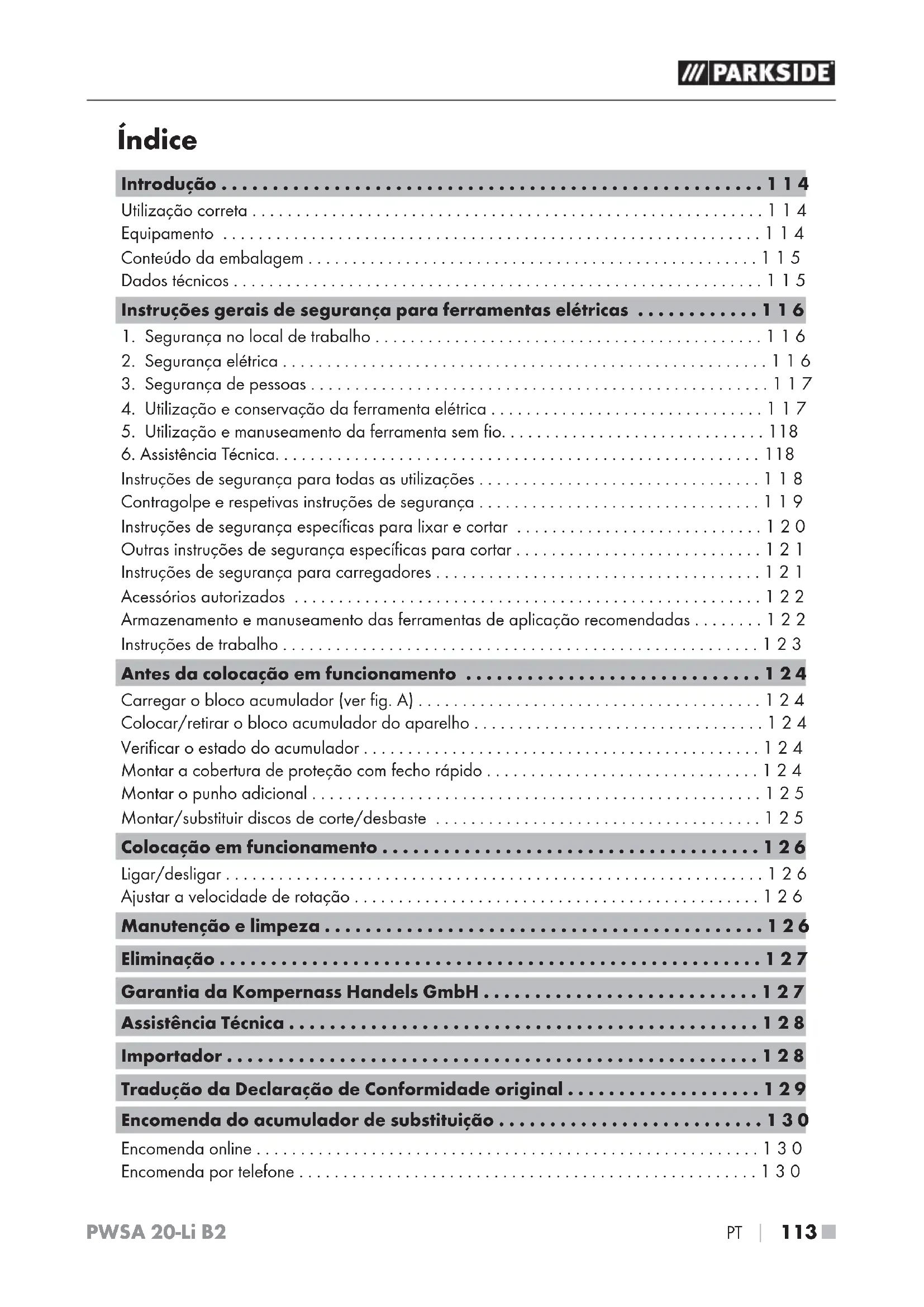 - Encomenda por telefone PWSA 20-Li B2 ■ 114 p. 130