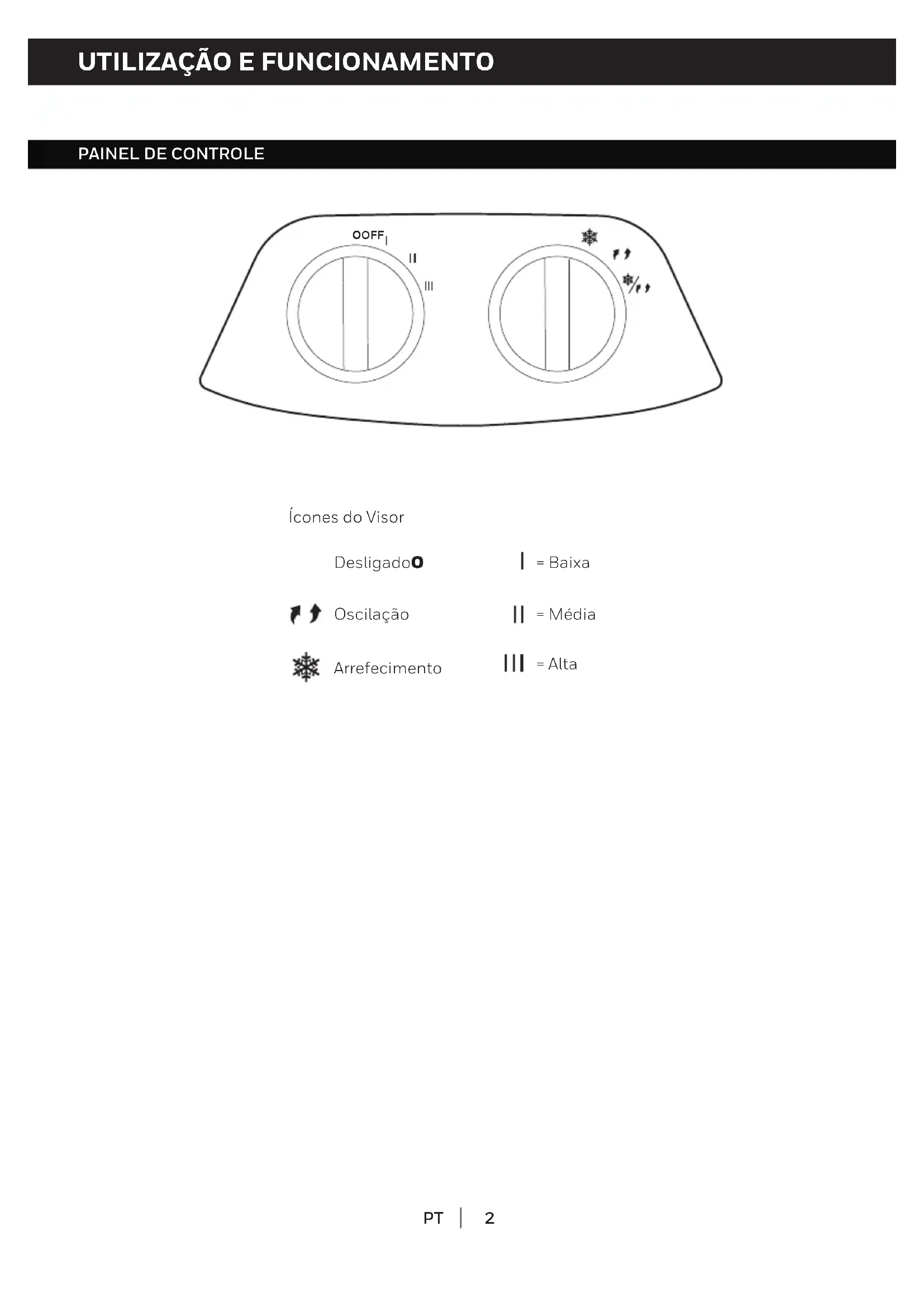 O OFF Ícones do Visor Oscilação DesligadoO Arrefecimento = Baixa = Média = Alta3 UTILIZAÇÃO E FUNCIONAMENTO (CONTINUAÇÃO)