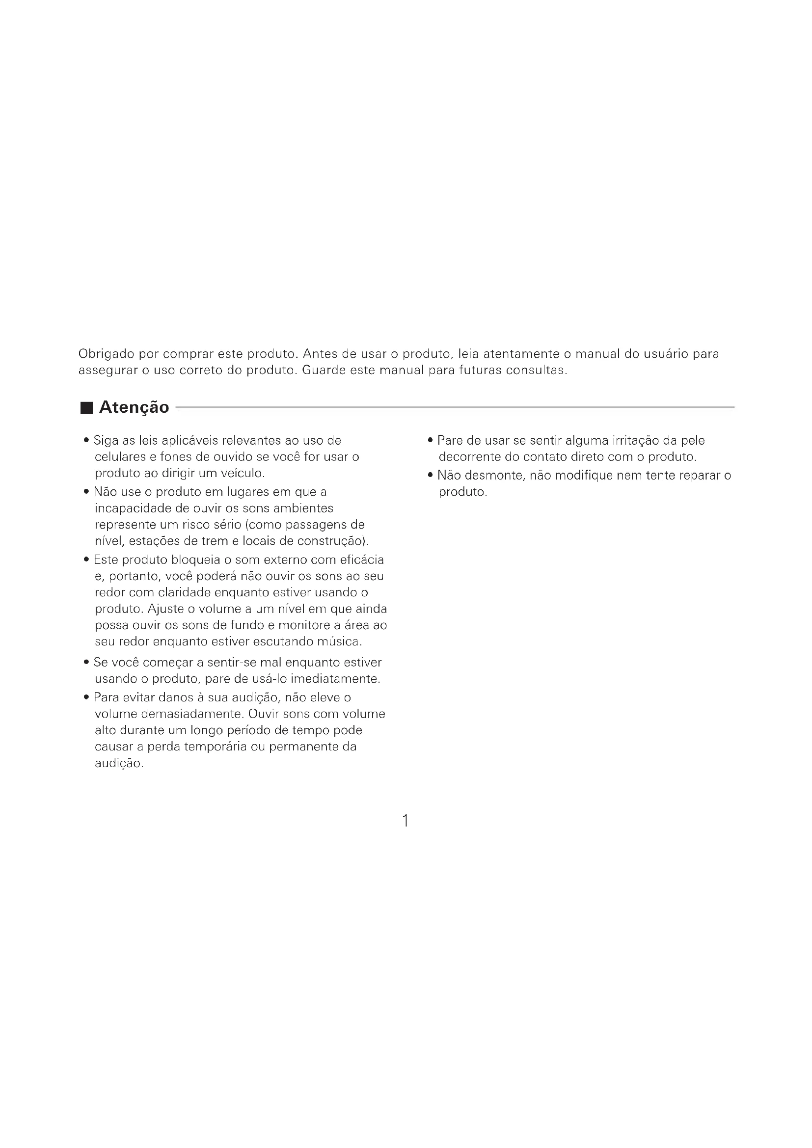 - Ao usar o produto em um ambiente seco, você pode sentir uma sensação de formigamento em seus ouvidos. Isso é causado pela eletricidade estática acumulada no seu corpo, e não indica um mau funcionamento do produto.