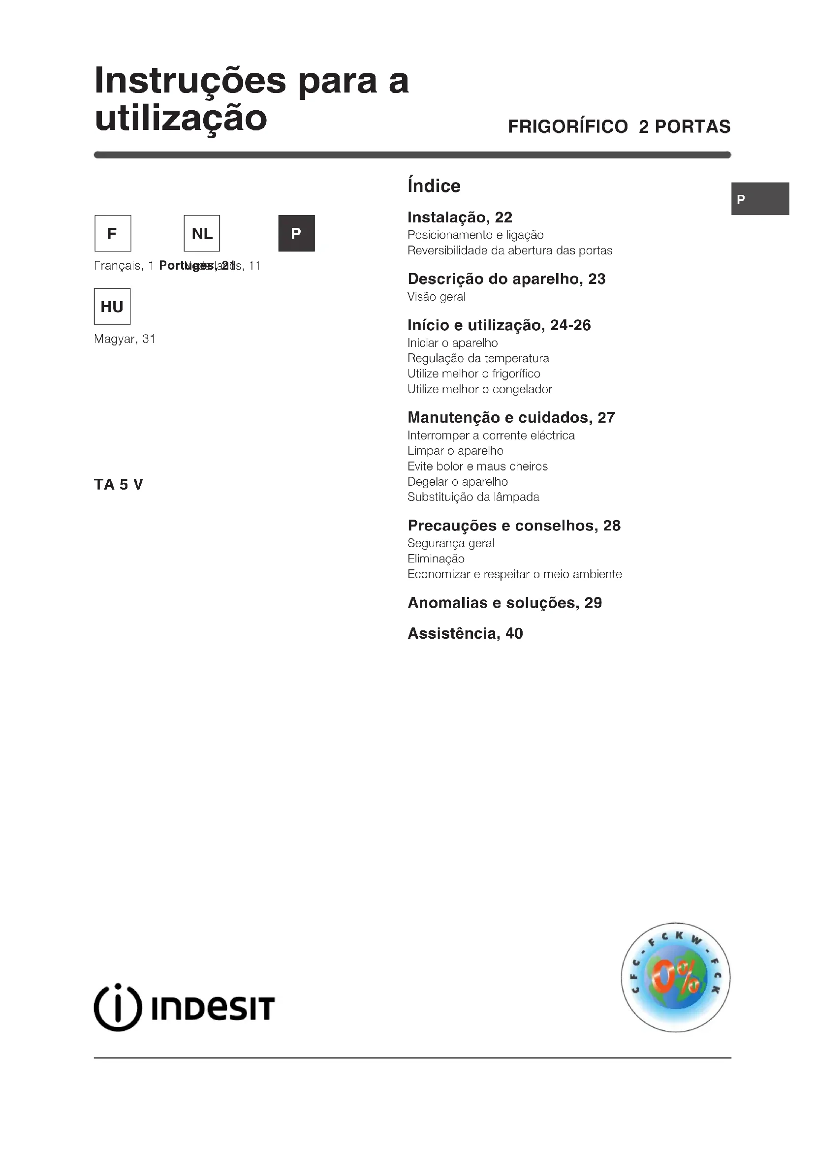 TA 5 V (FR) - Geladeira INDESIT - Manual de utilização gratuito
