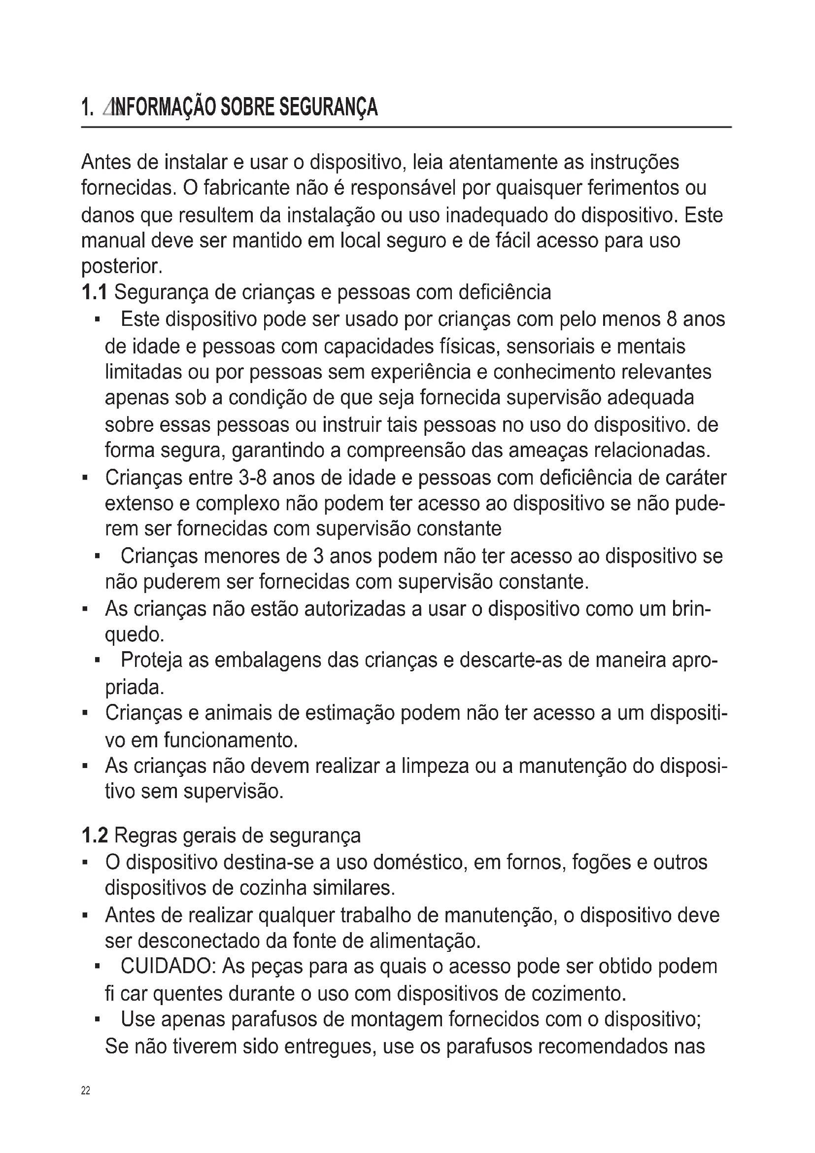 1.1 Segurança de crianças e pessoas com defi ciência