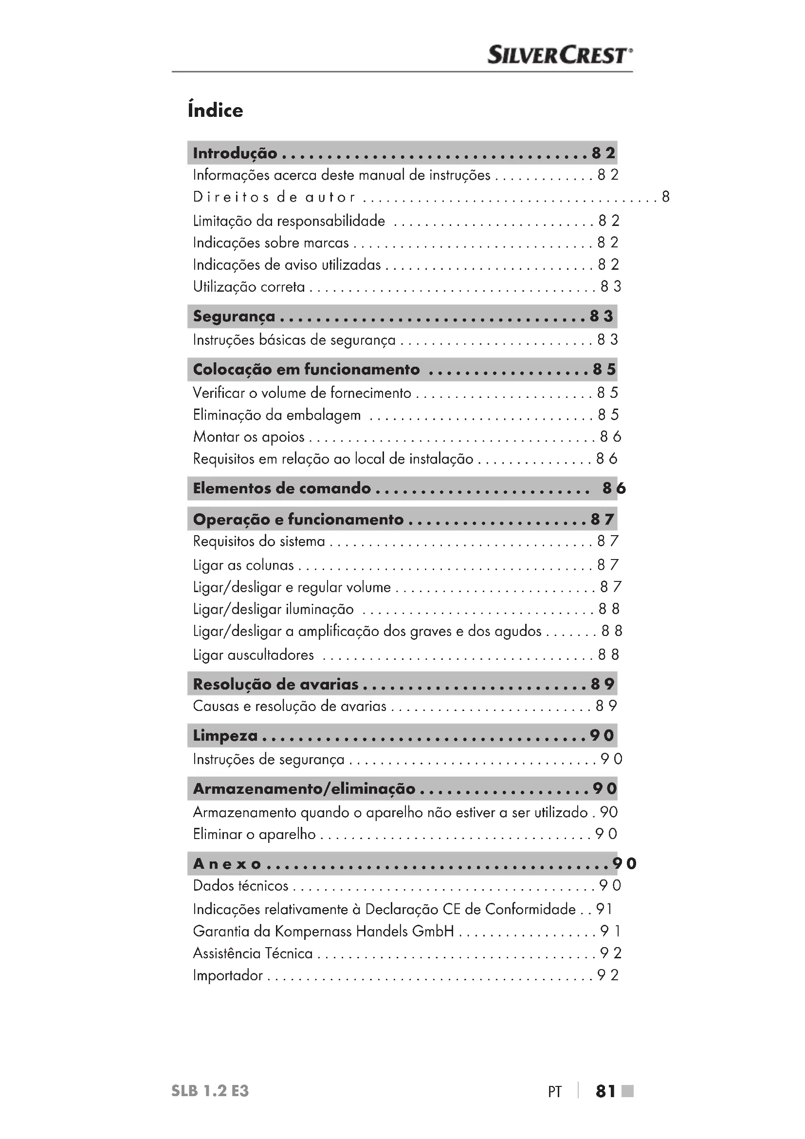 - 81 ■ SLB 1.2 E3 Índice Introdução p. 82