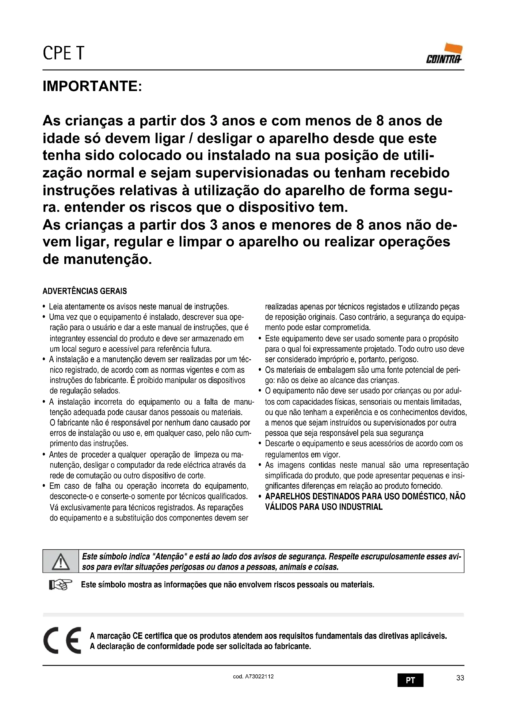 CPE T cod. A73022112• Leia atentamente os avisos neste manual de instruções.