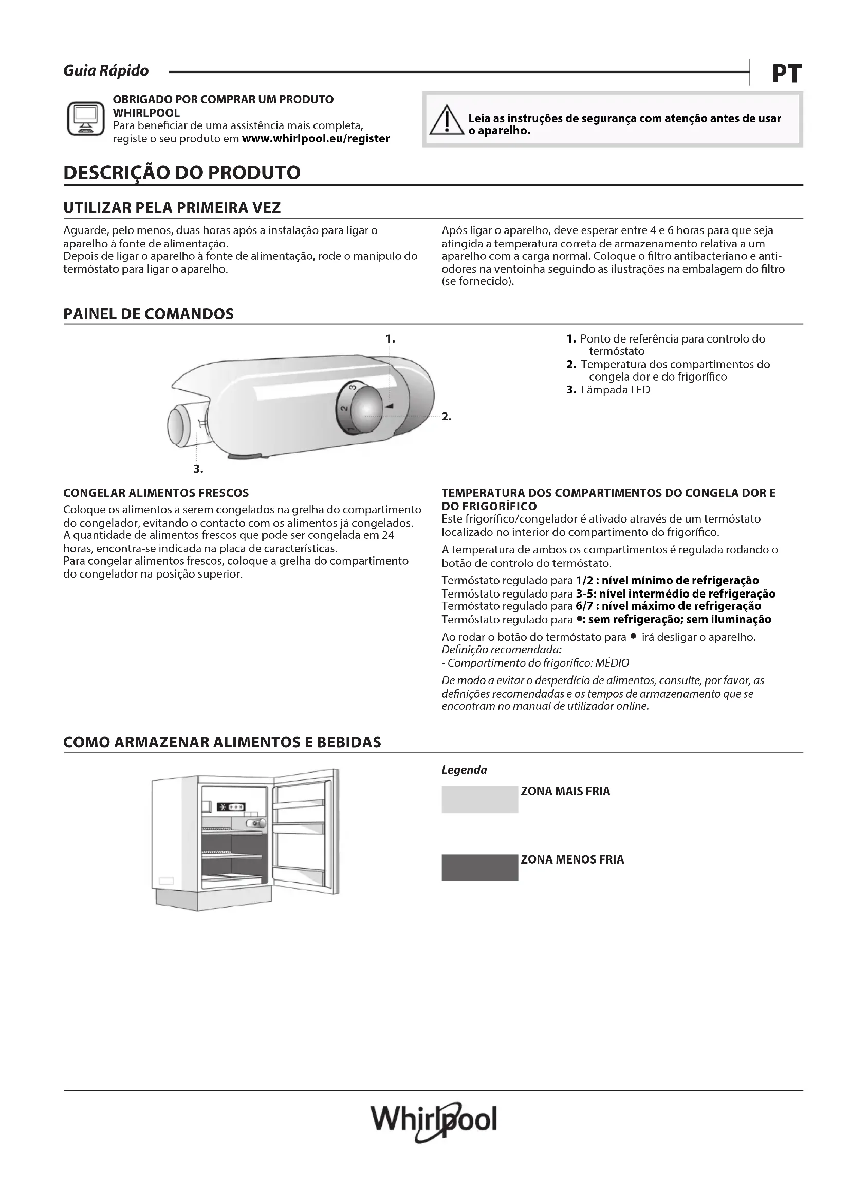 WHIRLPOOL Para beneciar de uma assistência mais completa, registe o seu produto em www . whirlpool . eu/ register Leia as instruções de segurança com atenção antes de usar o aparelho.