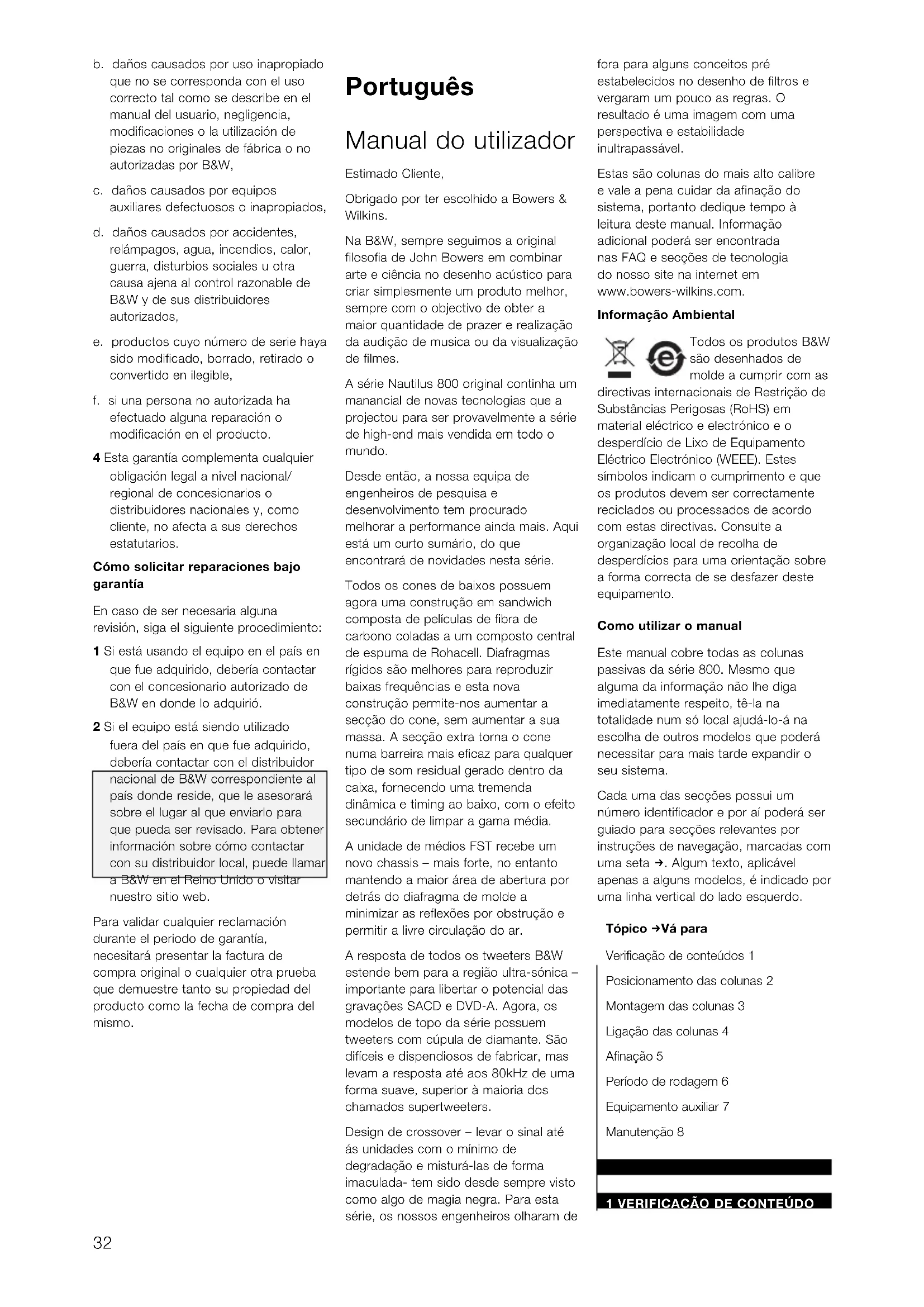 MANUAL DE UTILIZADOR 803S BOWERS & WILKINS