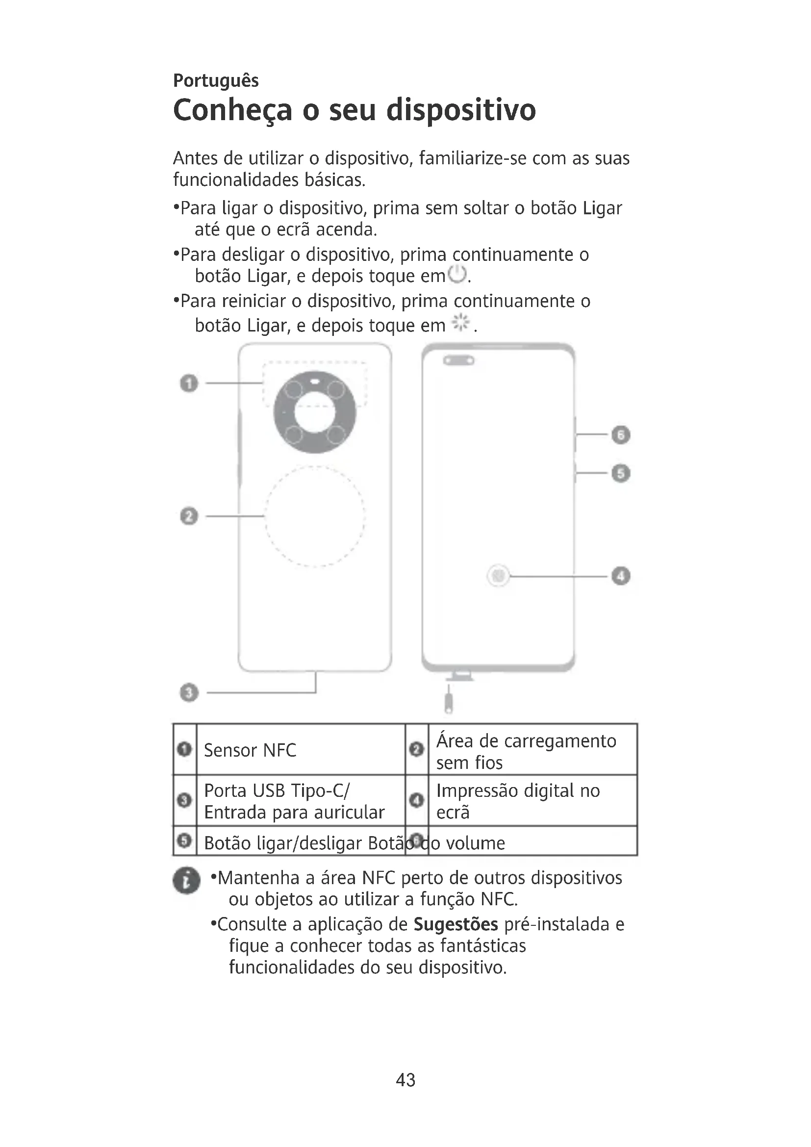 - Consulte a aplicação de Sugestões pré-instalada e que a conhecer todas as fantásticas funcionalidades do seu dispositivo. 43Introdução