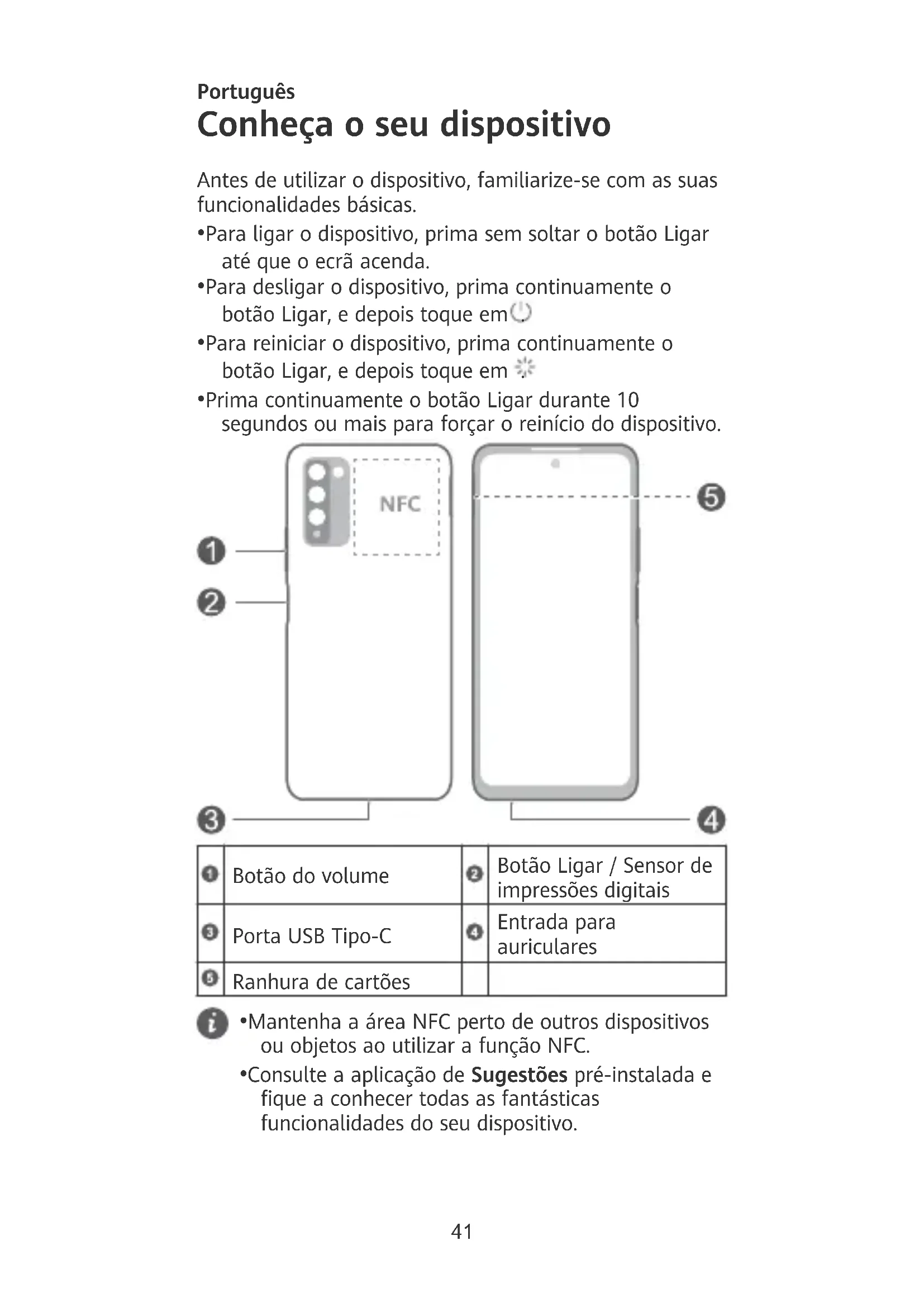 - Consulte a aplicação de Sugestões pré-instalada e que a conhecer todas as fantásticas funcionalidades do seu dispositivo. 41Introdução