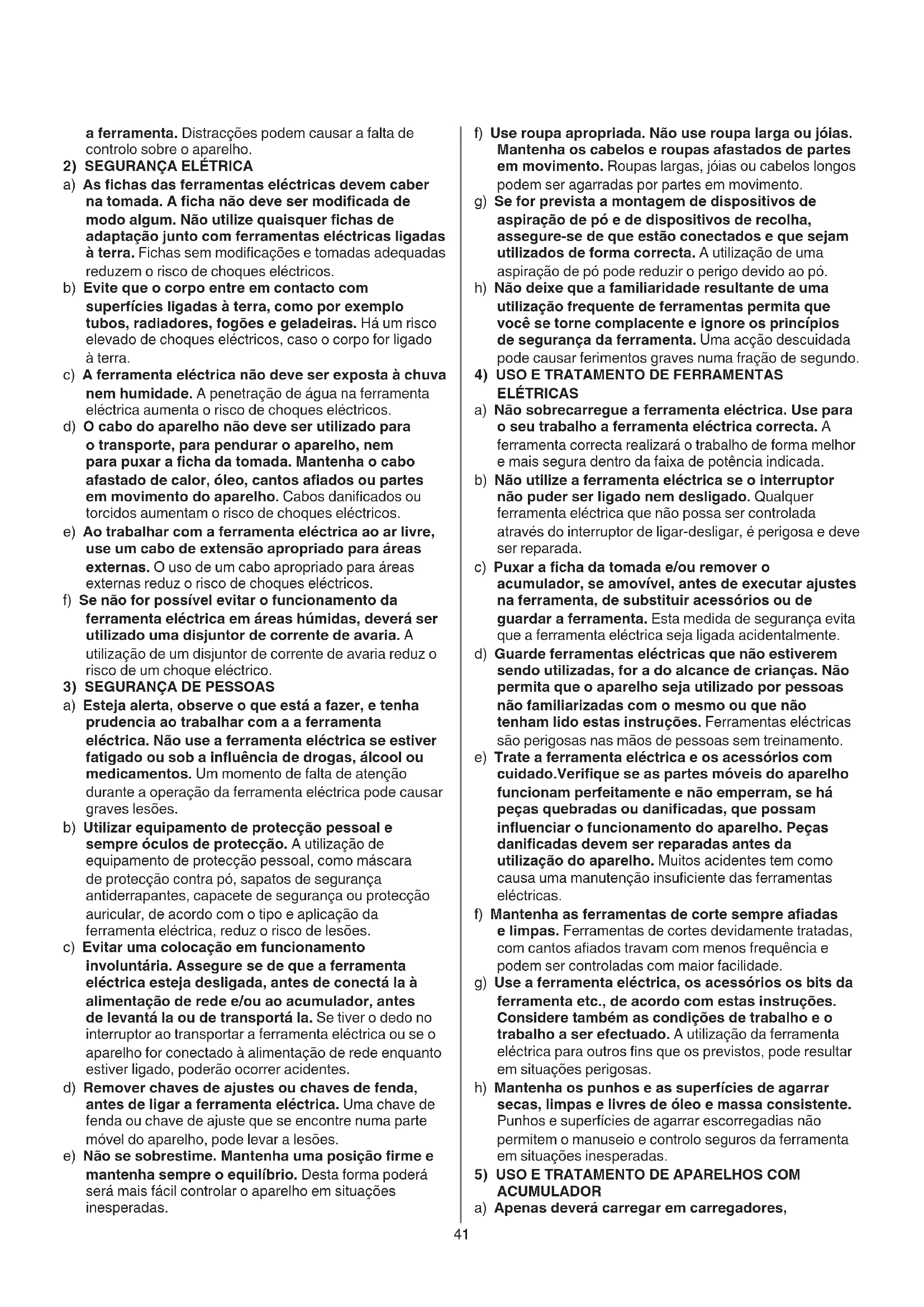 ACUMULADOR a) Apenas deverá carregar em carregadores, a ferramenta. Distracções podem causar a falta de controlo sobre o aparelho.