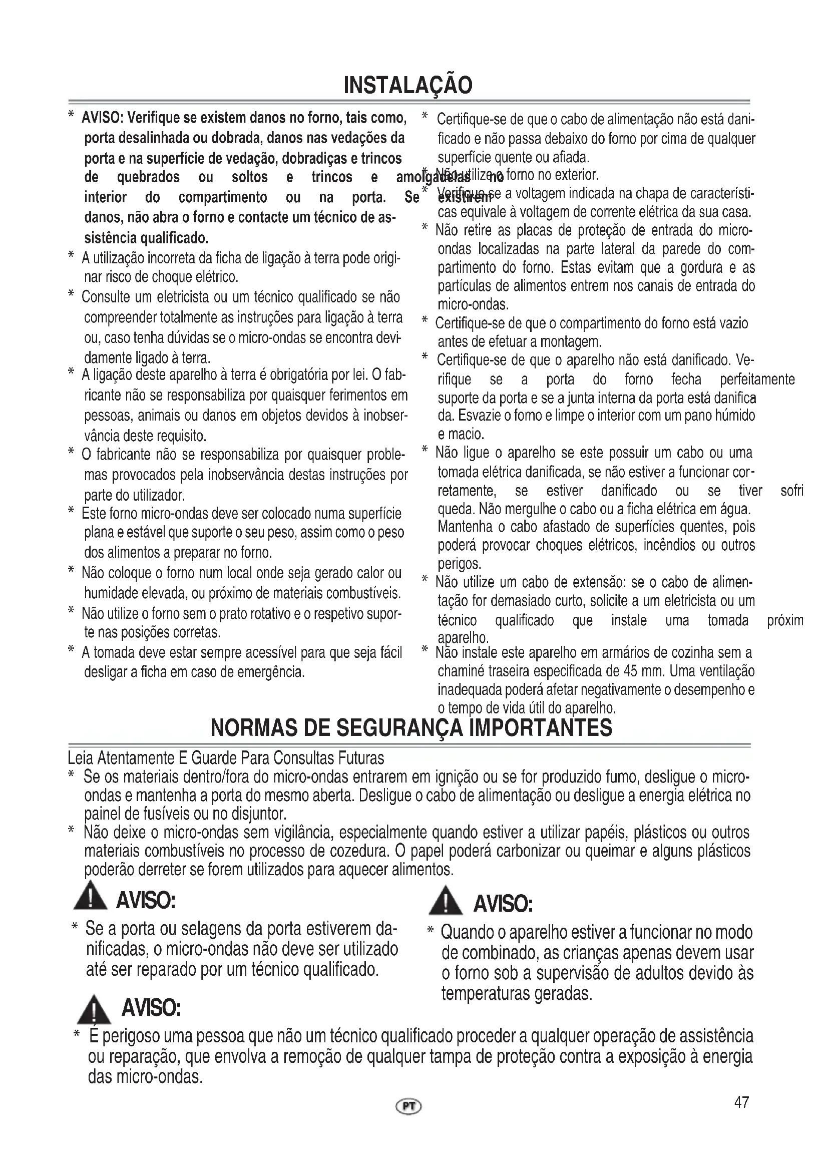 - Se a porta ou selagens da porta estiverem da- nificadas, o micro-ondas não deve ser utilizado até ser reparado por um técnico qualificado. AVISO: