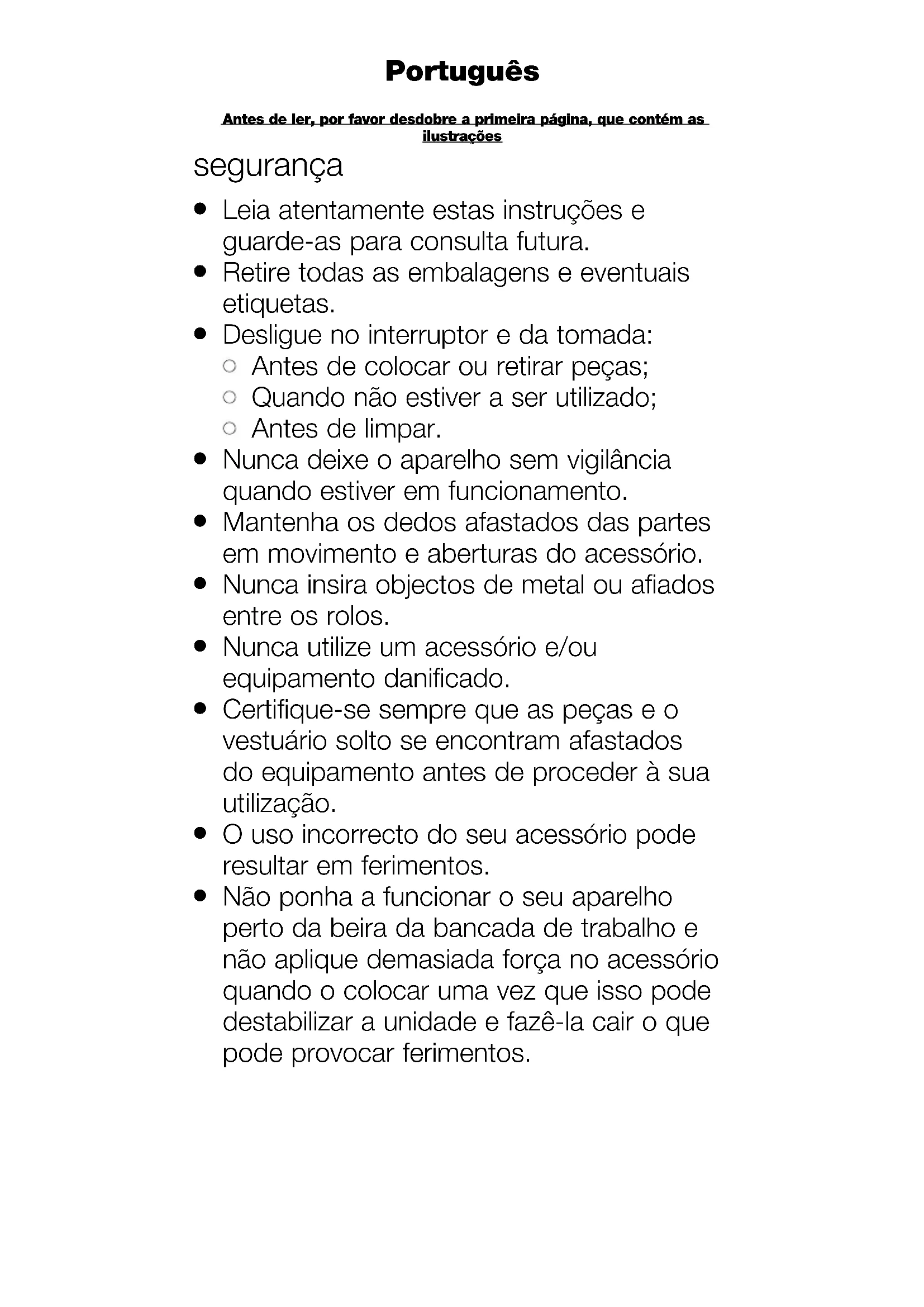 O uso incorrecto do seu acessório pode resultar em ferimentos.