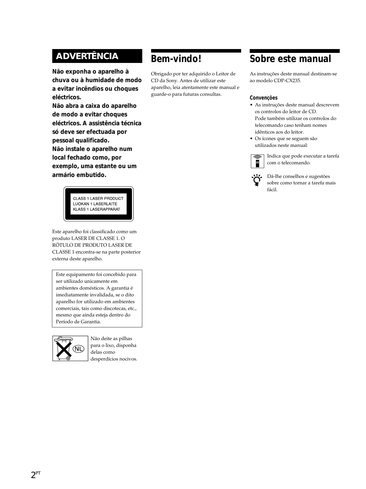 CDP-CX235 - Leitor de CD SONY - Manual de utilização gratuito