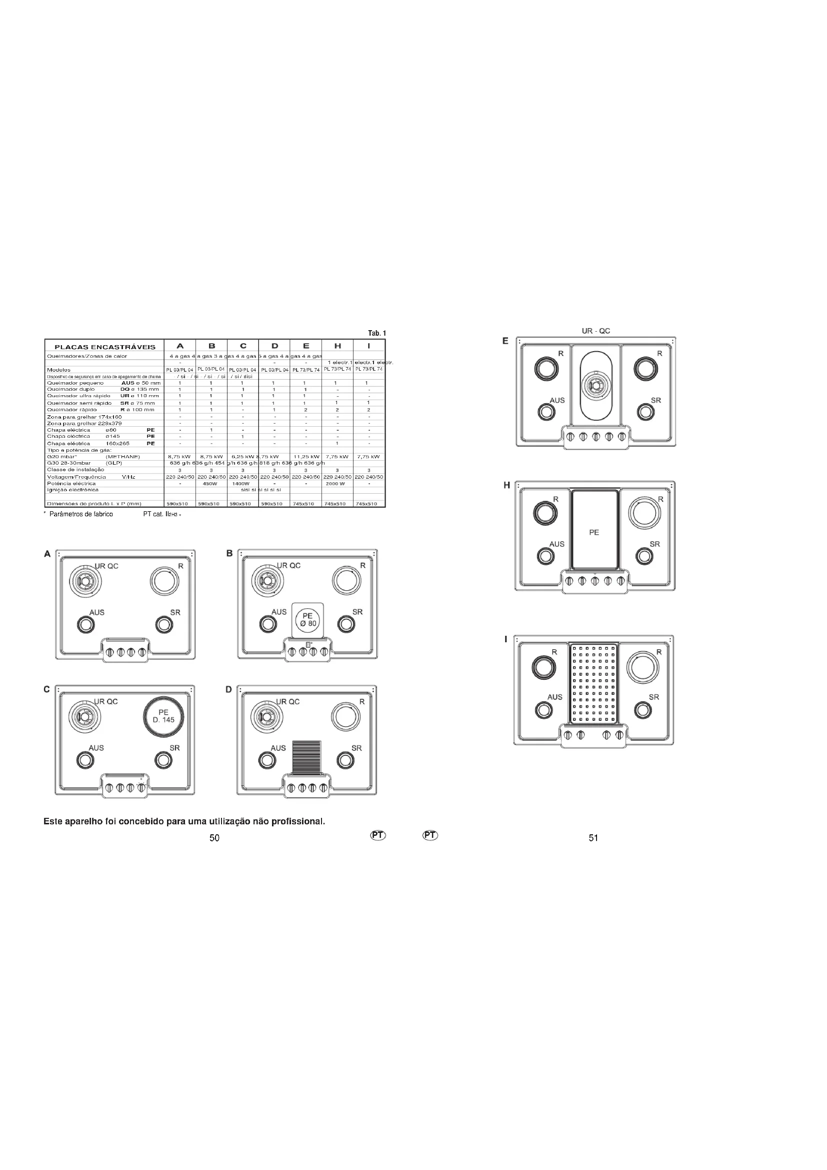 - Parâmetros de fabrico PT cat. II2H3 + Tab. 1 Este aparelho foi concebido para uma utilização não profissional. PTPT53