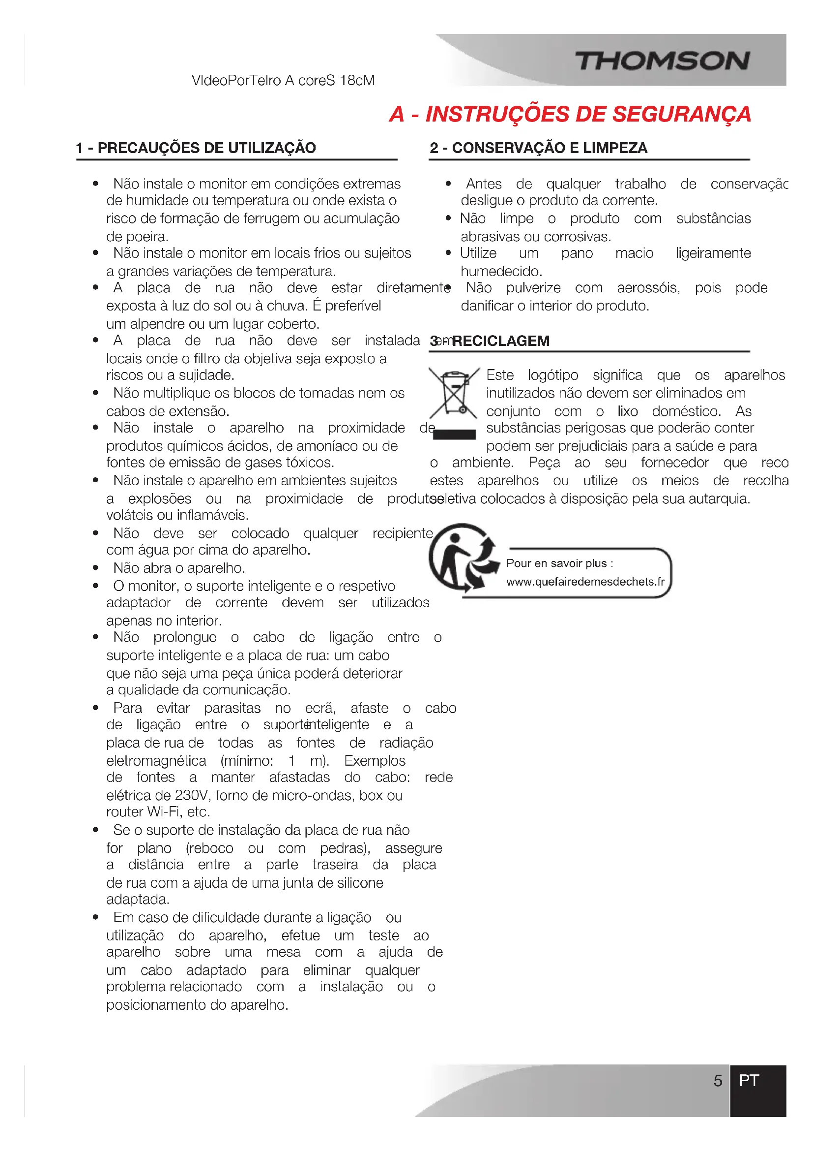 Encontre gratuitamente o manual do aparelho 512262 THOMSON em formato PDF.